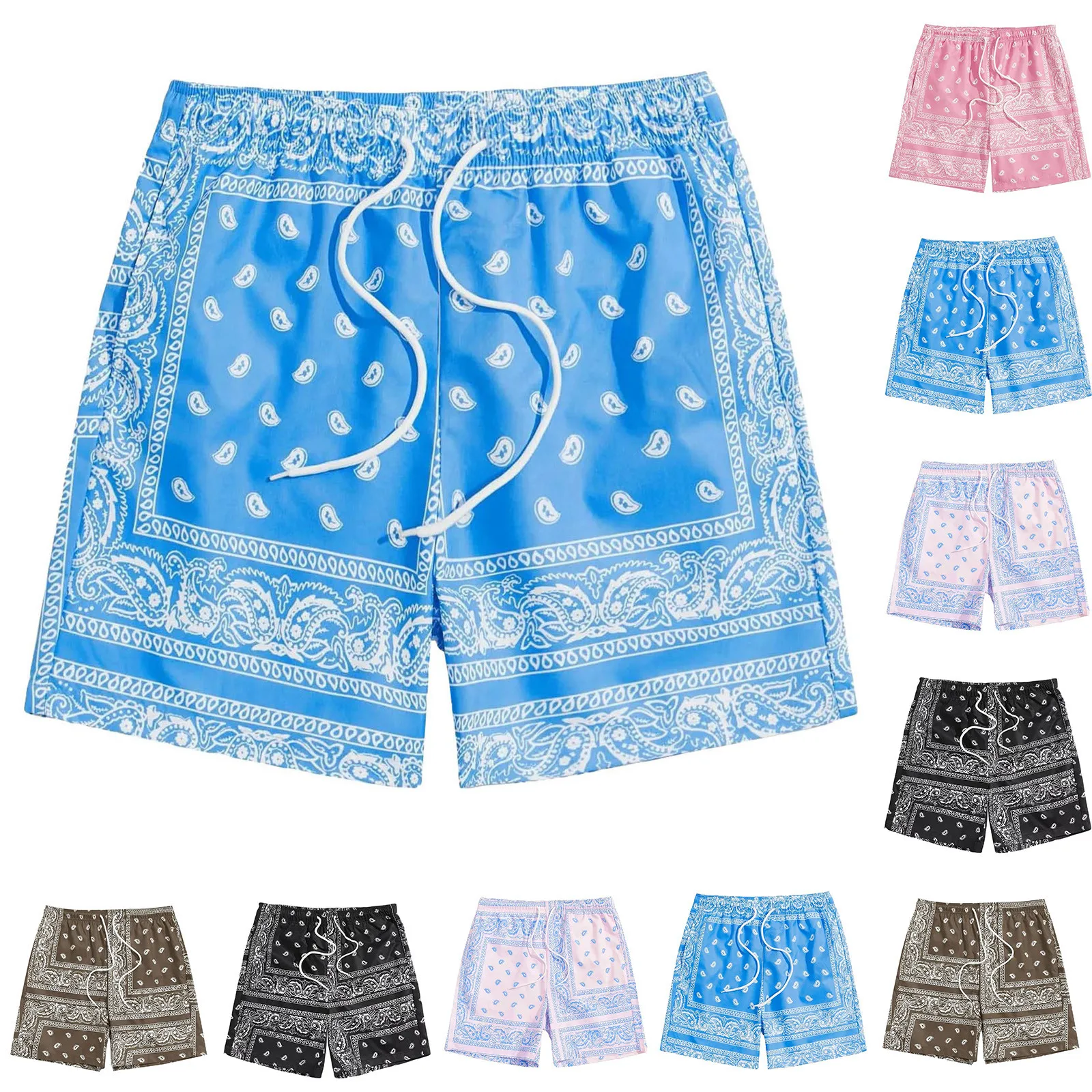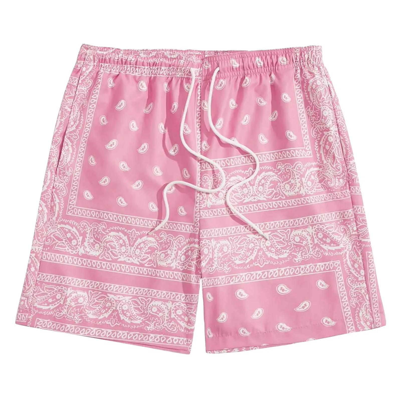 Design: Paisley print, drawstring waist, straight leg, beach shorts