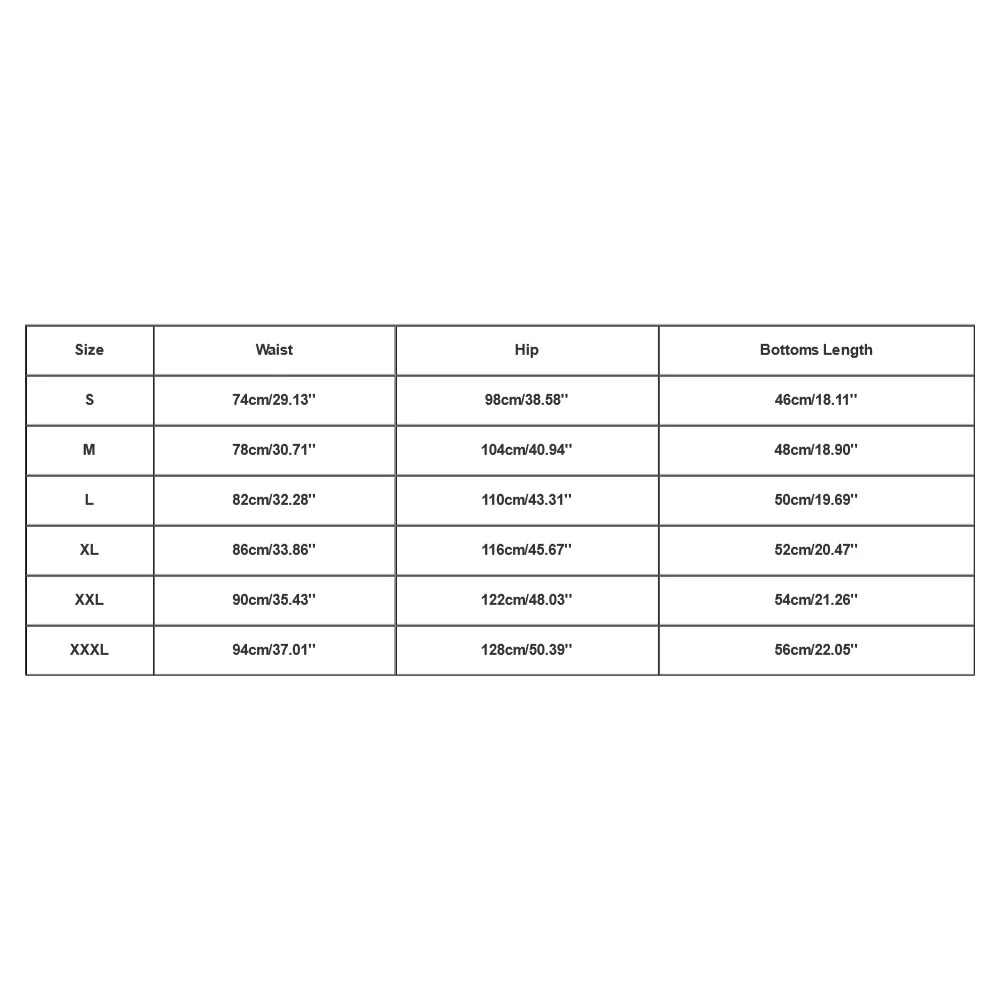 - Size XXXL: Waist 94cm / 37.01”, Hip 128cm / 50.39”, Bottoms Length 56cm / 22.05”