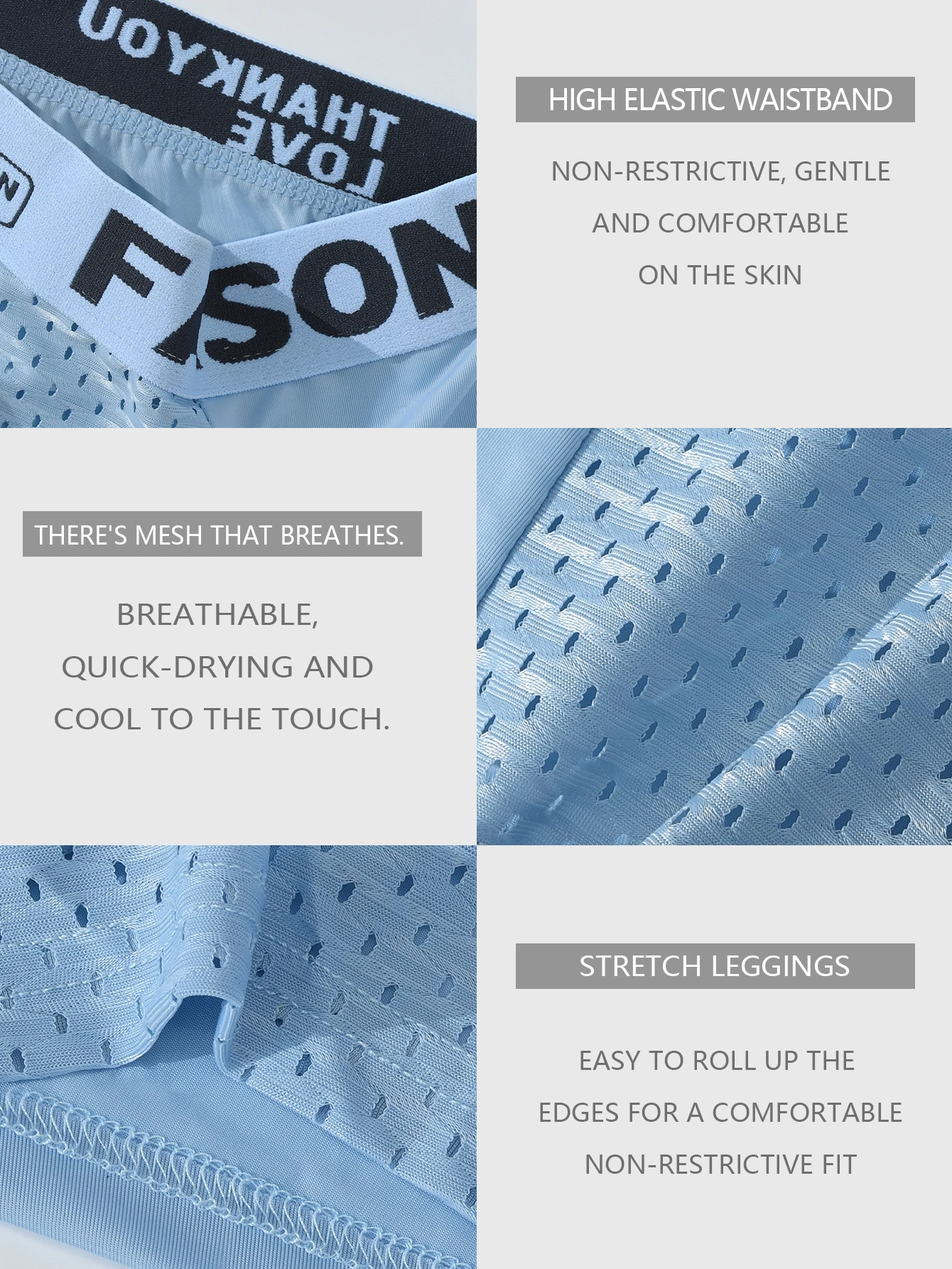 Designed for airflow and everyday comfort, these breathable mesh boxer briefs have a cool to the touch feel and quick drying fabric. The design focuses on a gentle fit with a high elastic waistband, a shaped U convex pouch, and a one piece back panel that follows the hip curve for a smoother fit.
