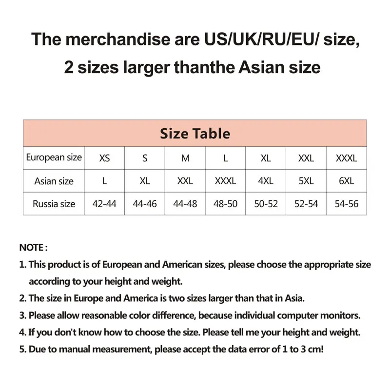Sizes shown: S, M, L, XL, XXL. Use the size chart image provided by your supplier and choose based on your height and weight when available.