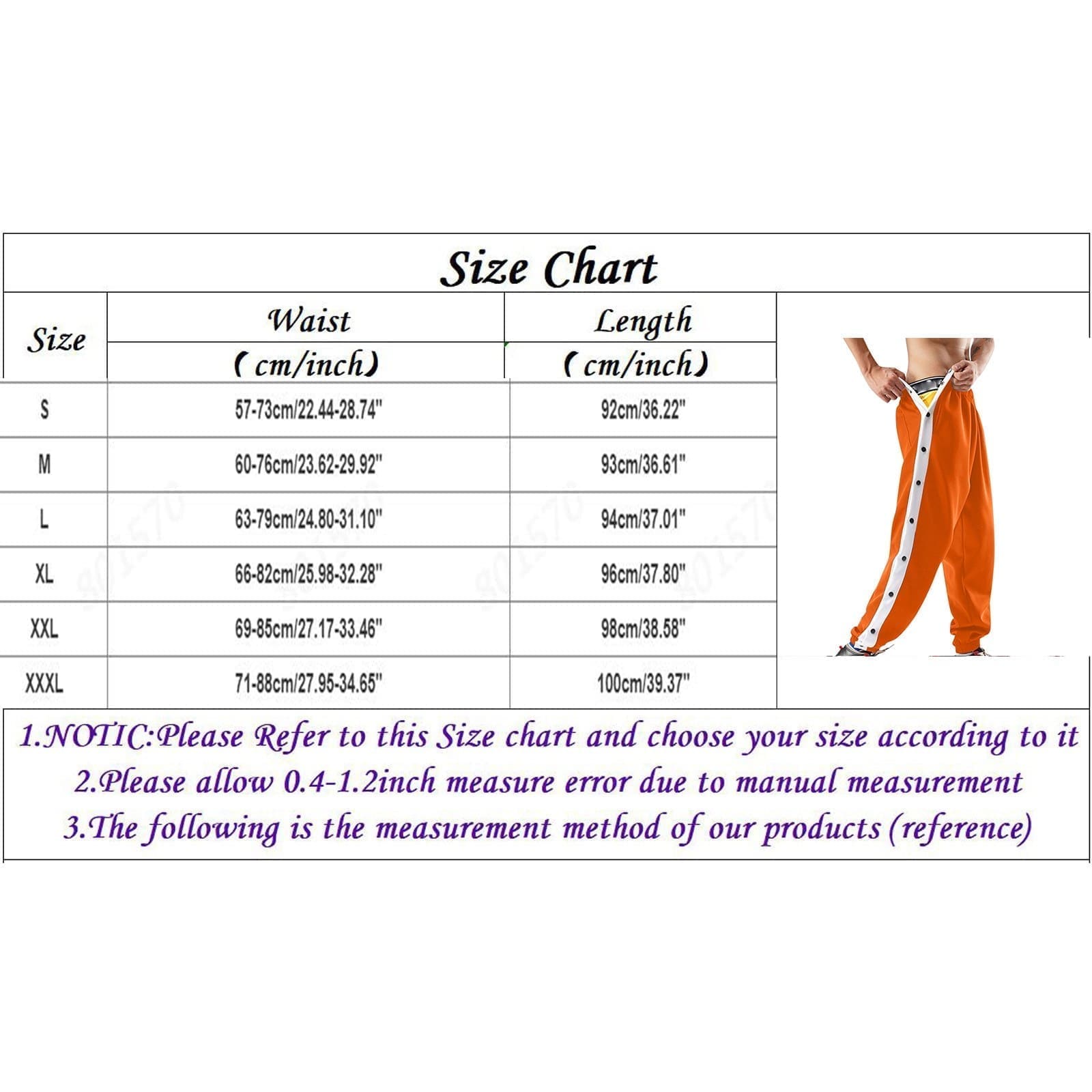 - Size: Waist (cm/inch) Length (cm/inch)