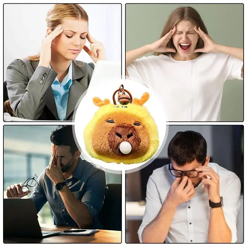 - Stress-Relieving Delight: Revel in the calming effects of our capybara stuffed pendant. By simply squeezing this cute little guy, you’ll see the gum in its mouth get bigger. Plus, it doubles as a keychain for convenience and creative stress relief outdoors.