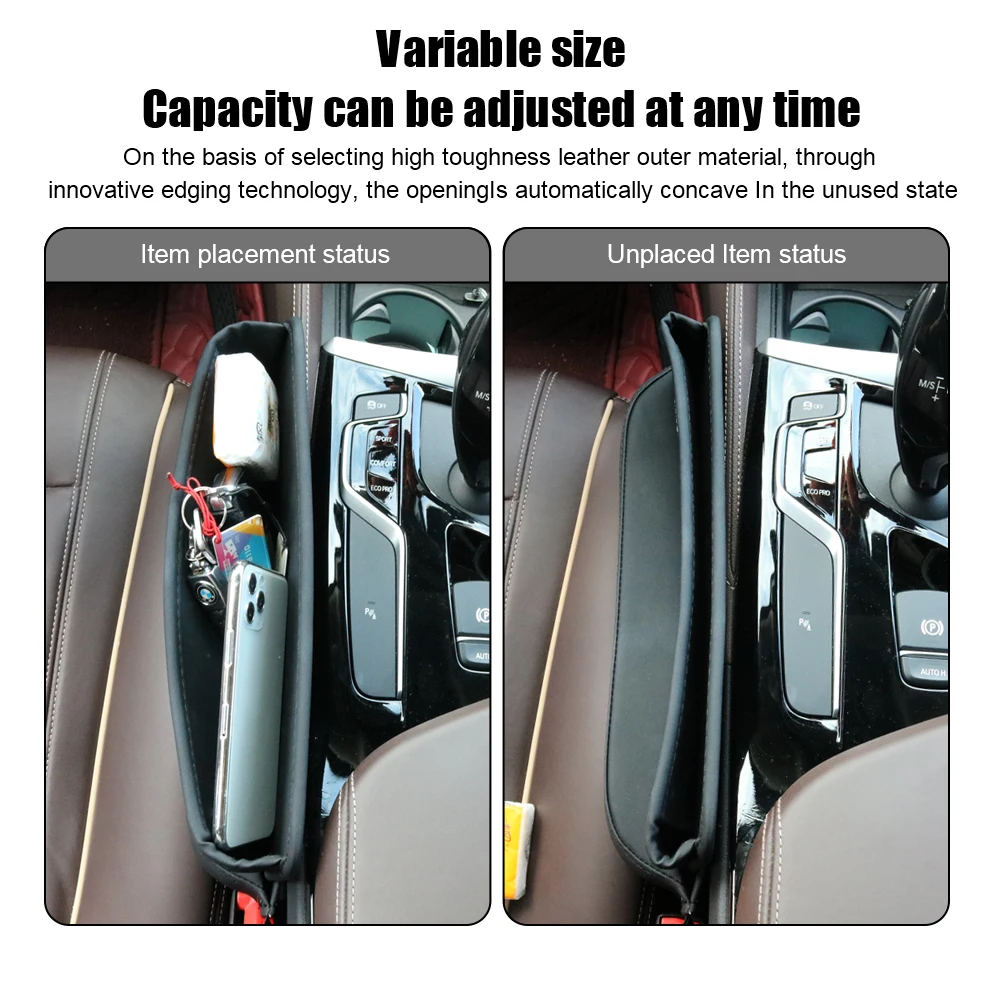 - The novel and unique appearance solves storage problems and prevents objects from falling out of the seat gap. Made from high-quality leather, it resists deformation.