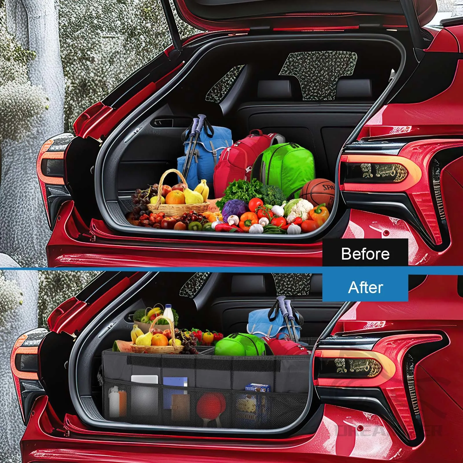 - Multifunctional: Organize groceries, office supplies, accessories (handbags, shoes), or kids’ toys. Helps consolidate trunk clutter and frees space for coolers or camping gear.