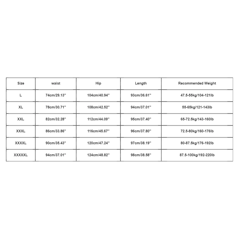 Size: XXL, Waist: 96-101cm/37.80-39.76”, Hip: 122cm/48.03”, Length: 111cm/43.70”