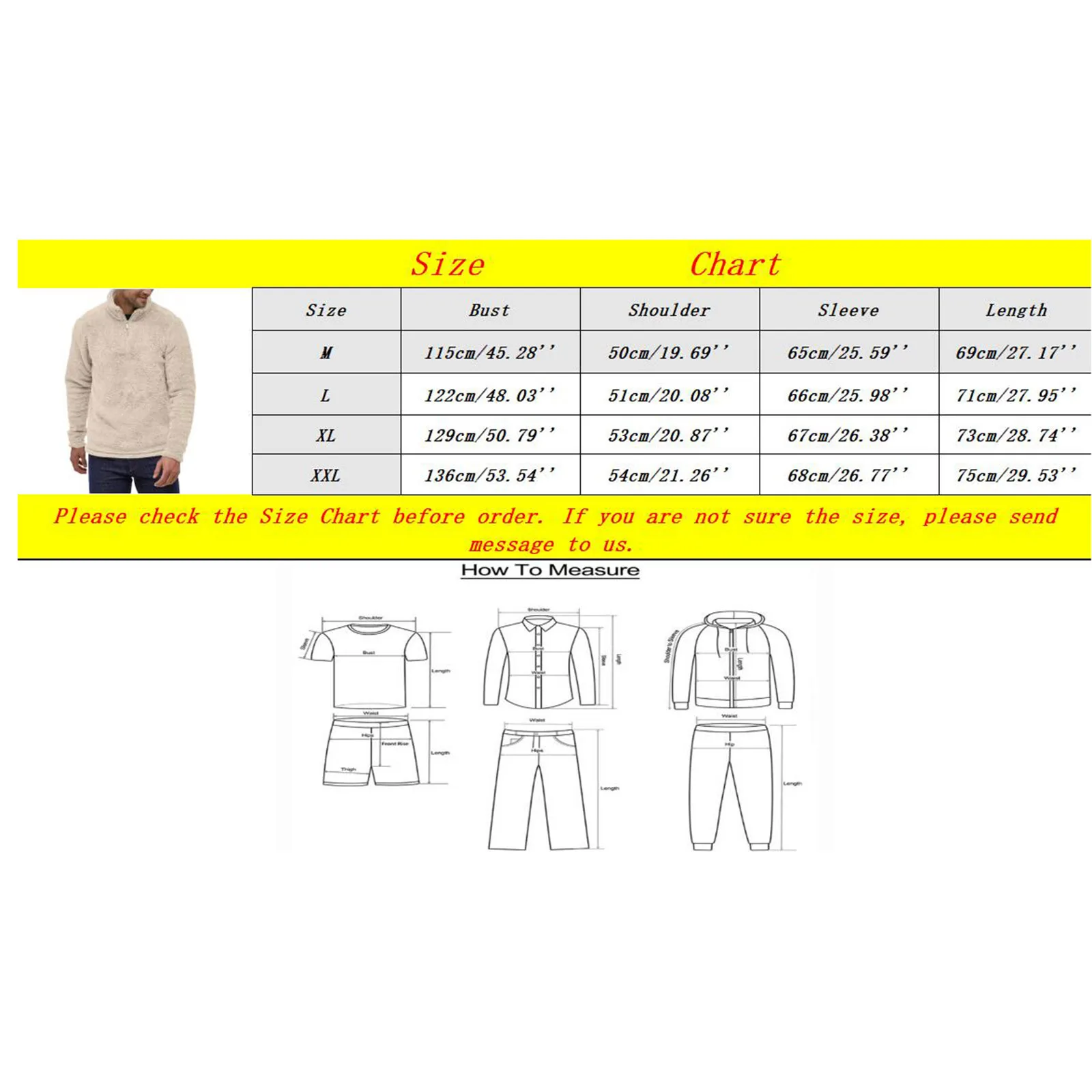 - M (Bust: 115cm/45.28”, Shoulder: 50cm/19.69”, Sleeve: 65cm/25.59”, Length: 69cm/27.17”)