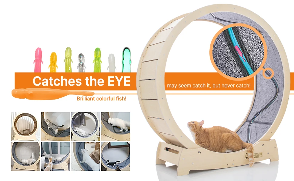 - Let Them Run on Their Own: A fish inside attracts your cat’s attention, keeping them running. You’ll receive three fish—one luminous and two random colors. Star Catwheel is perfect for pets who enjoy running day or night without disturbing your rest.