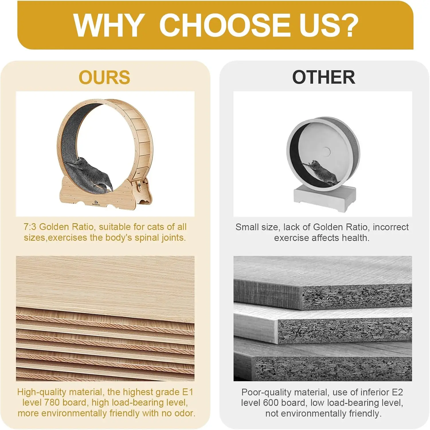 At Navx, we prioritize the health of pets, which is why we have designed a cat wheel with a 7:3 golden ratio. This ratio allows cats to maximize muscle, joint, and spinal exercise during their time on the cat wheel, promoting their overall health.