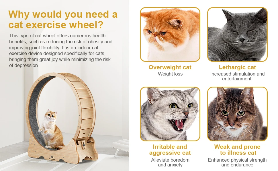 Utilize universal-grade TPE wheels to ensure silent operation of the cat wheel, allowing cats to run without causing disturbances to others, even during nighttime.