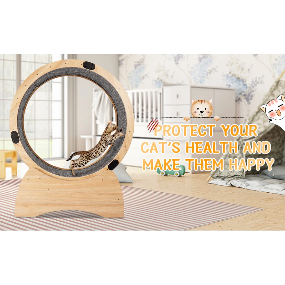 - Built to Last and Secure: This cat exercise wheel is made from solid multi-layer wood (birch and poplar) with a 0.5″ (12 mm) thickness and an ultra-narrow 0.2″ gap to prevent paw injuries. The widened base and running track deliver added stability. It offers many health advantages to cats, such as mitigating obesity risks and enhancing joint flexibility, ensuring their contentment.
