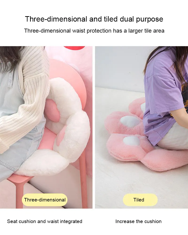 Our Cat Paw Plush Chair Pads are warm, soft, and versatile. They can be used as a seat cushion, floor mat, or pillow, making them an ideal item for decorating your reading room, office, living room, or even a chair on the terrace. Designed to reduce stress, these pads provide a comfortable space with their good flexibility and filled, elastic fabric. The fabric is soft, comfortable, skin-friendly, and resistant to shedding and fading.