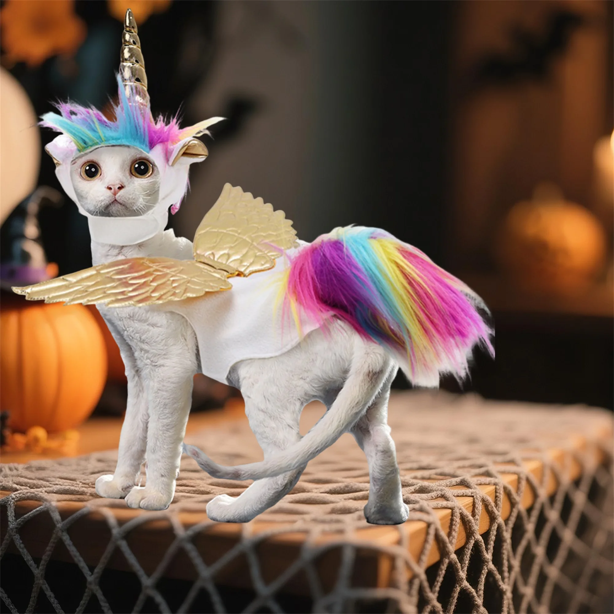Cat Unicorn Costume with Horns and Rainbow Mane
