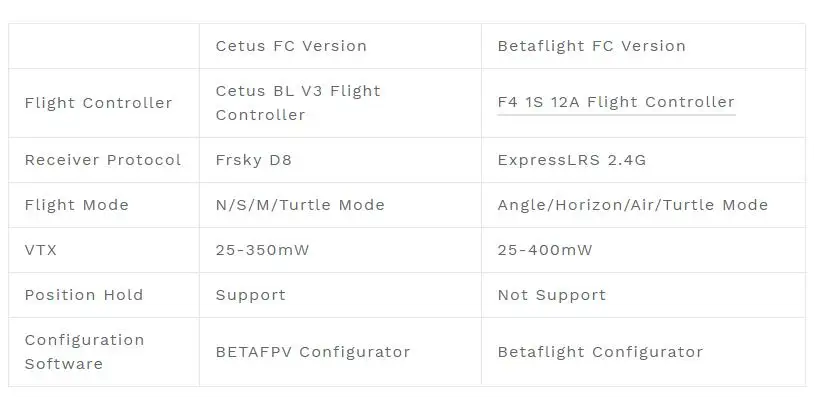 - Betaflight FC: Provides access to a wealth of FPV knowledge through the Betaflight community. Both versions ensure excellent power, speed, and advanced control modes for pilots.