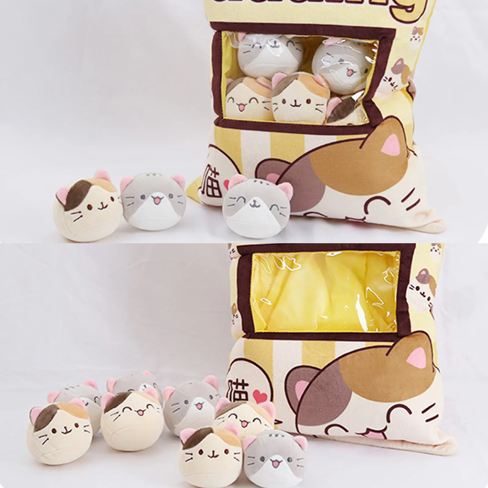 Discover the charm of a bag filled with soft, stuffed animal plush toys – a delightful and unique addition to any room! This adorable throw pillow contains 8 small, eye-catching stuffed animals, perfect for captivating the attention of kids. Not just a toy, these plush animals can also be used as charming home decorations.