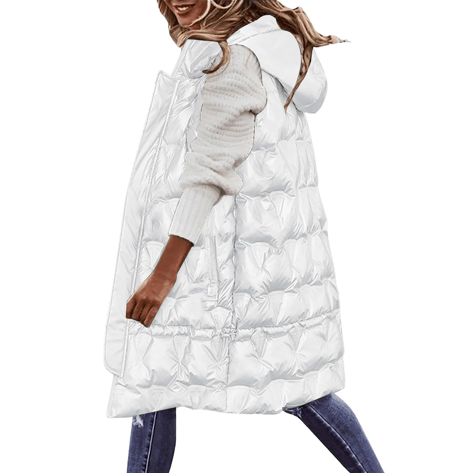 Chic Glossy Hooded Winter Vest for Women