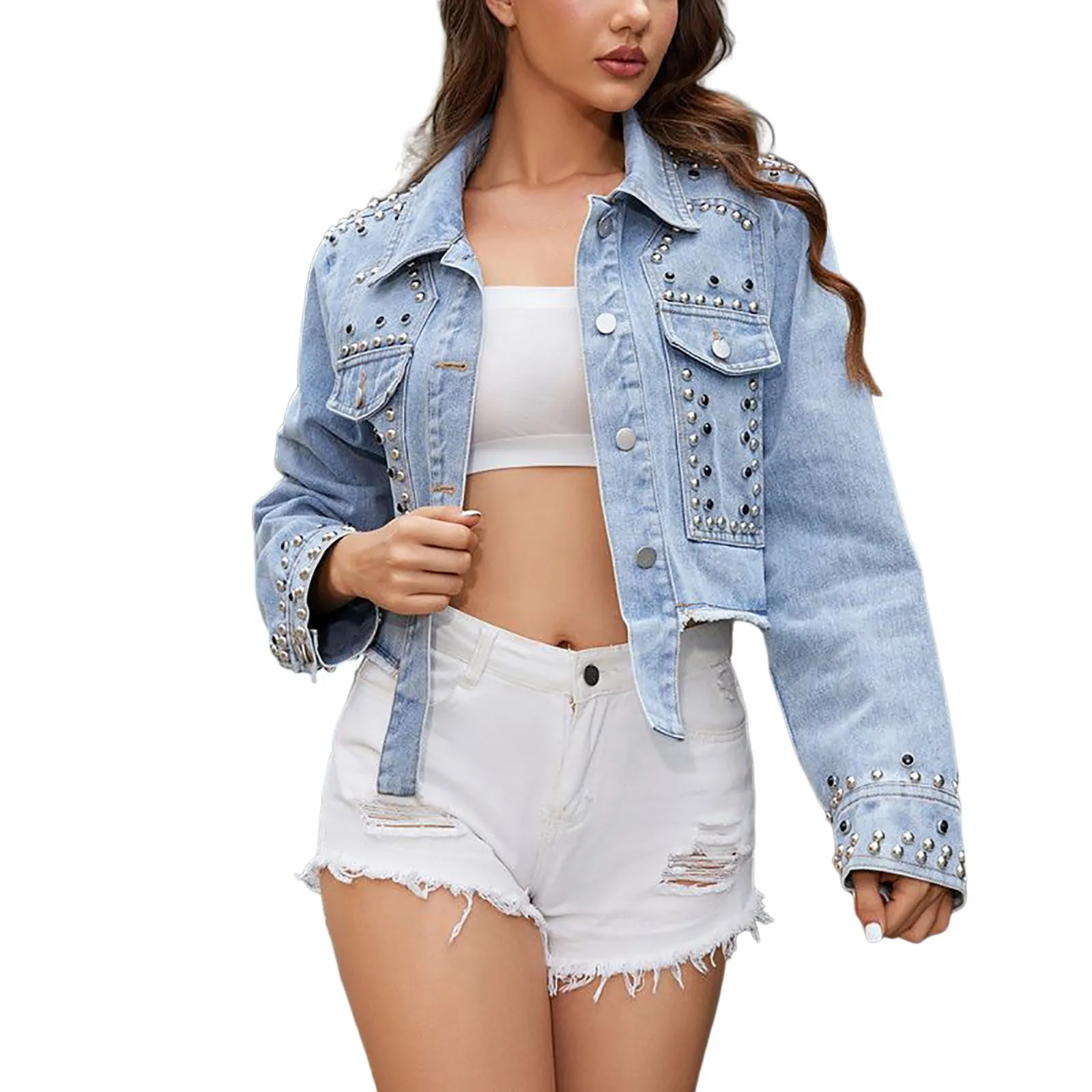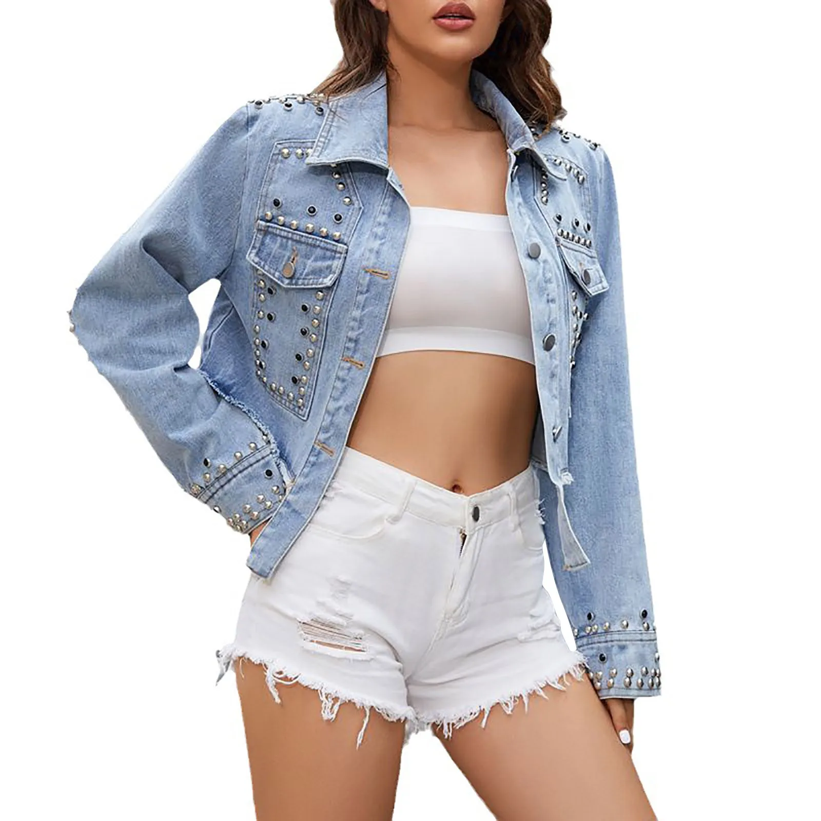 Chic Rivet Denim Jacket – Women’s Autumn