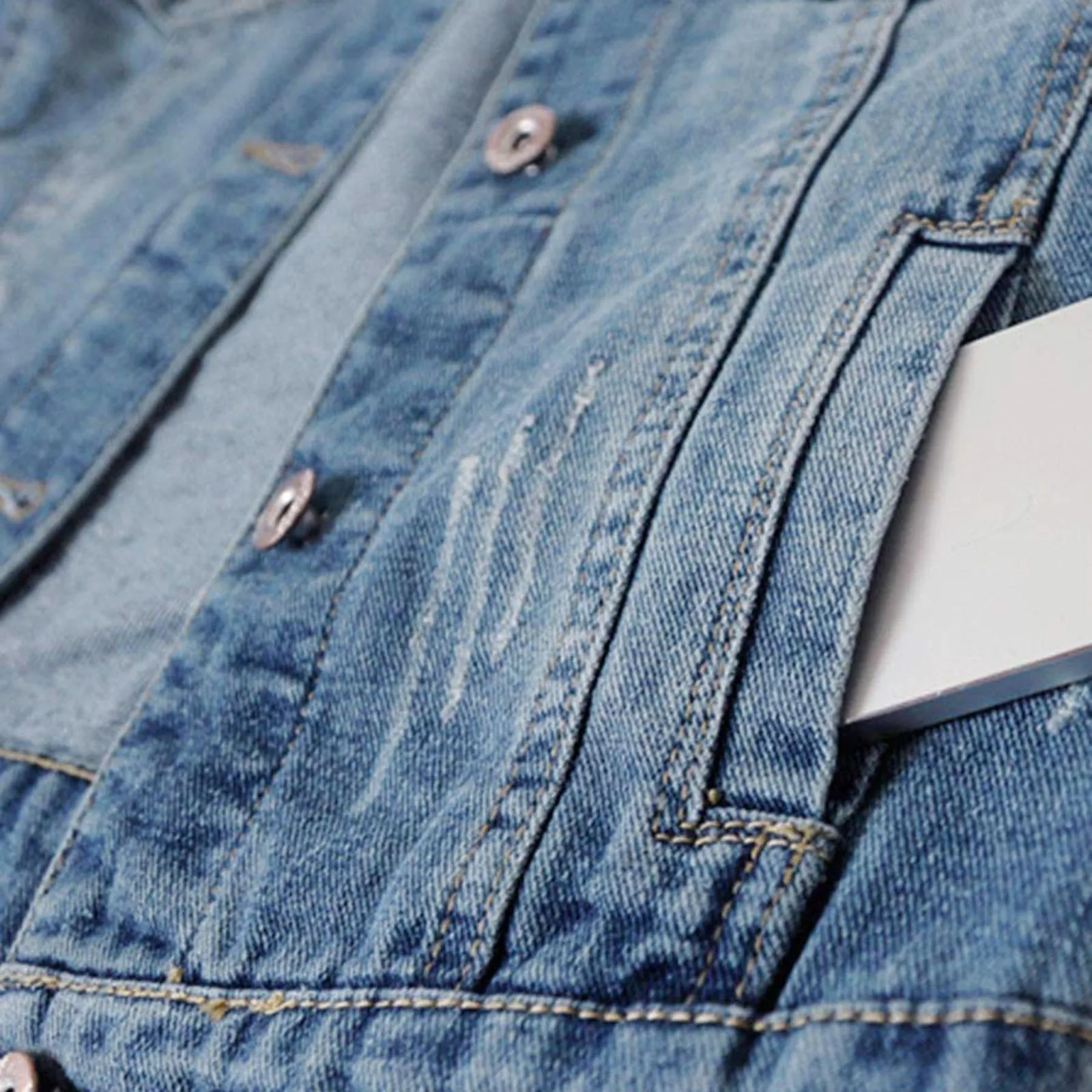 Material: This Denim Jean Jacket is crafted from soft, comfortable cotton fabric. Its durable denim offers both comfort and mobility, making it a versatile choice for everyday wear.