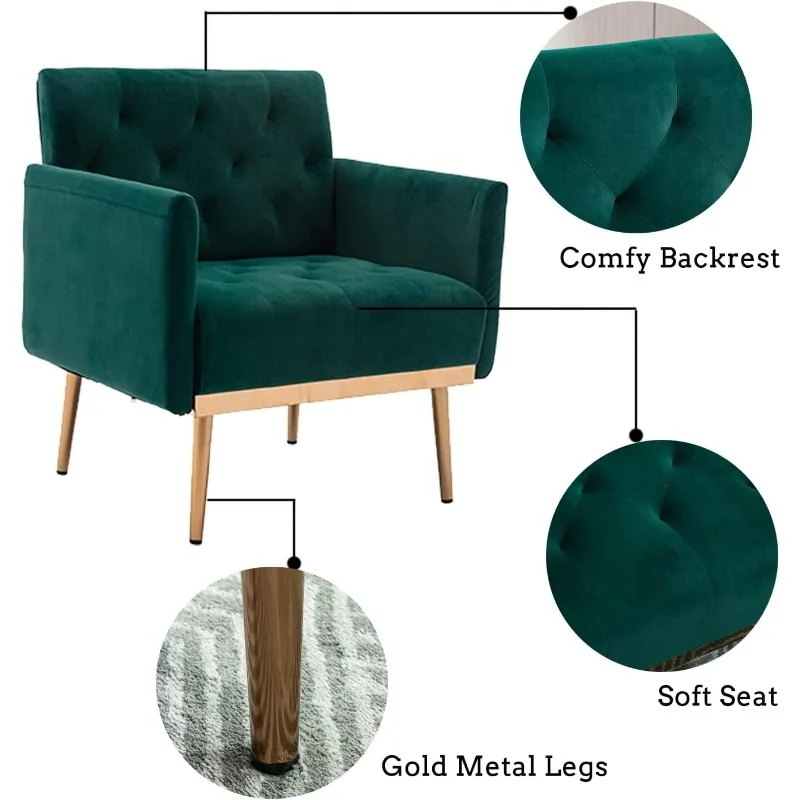 Olela Velvet Accent Chair with Arms for Living Room, Modern Tufted Single Sofa Armchair with Gold Metal Legs