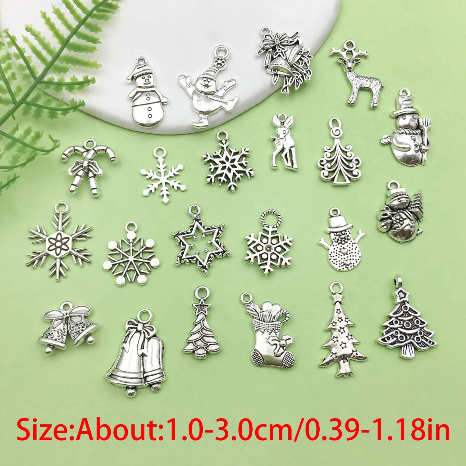 Bring festive cheer to your DIY projects with this set of Christmas-themed alloy charms. With classic holiday designs like Santa Claus, snowflakes, stockings, snowmen, reindeer, bells, gifts, and Christmas trees, these lightweight pendants are perfect for handmade jewelry, ornaments, gift tags, and seasonal crafts.