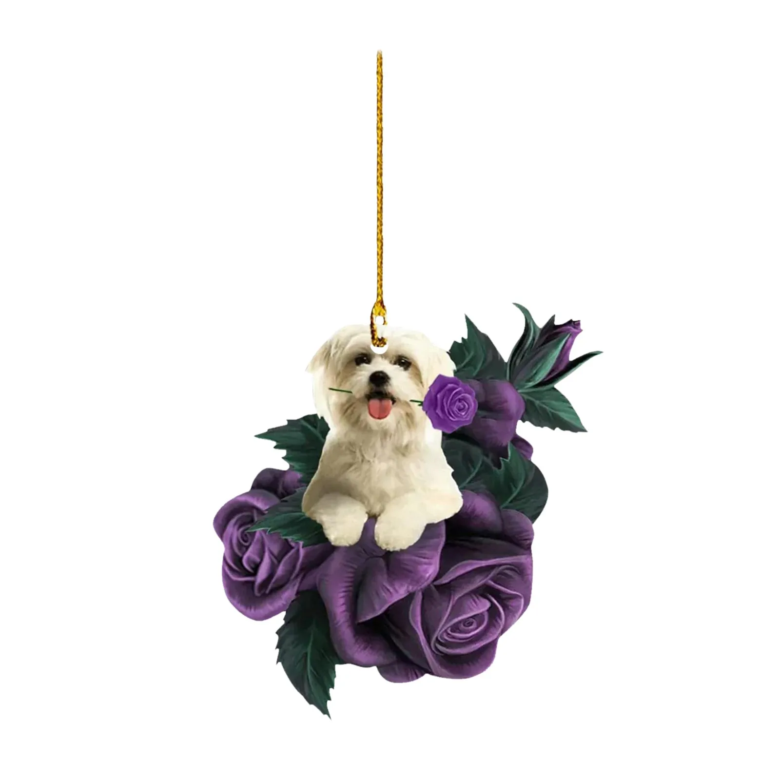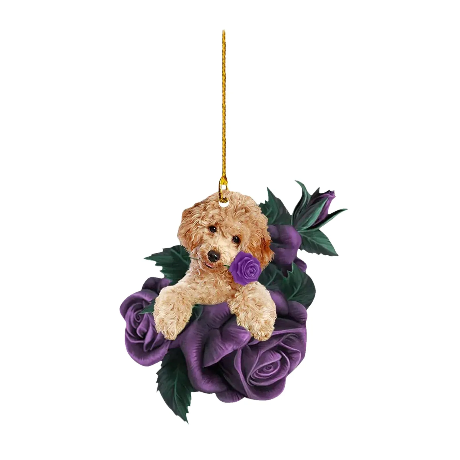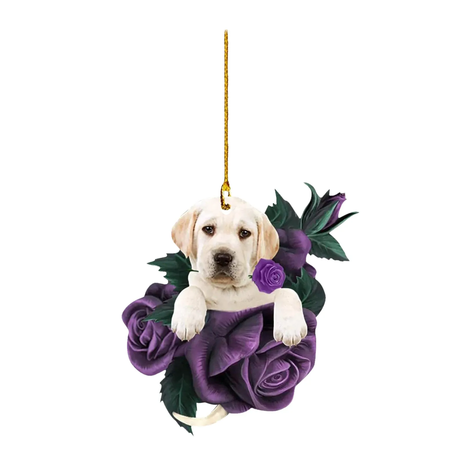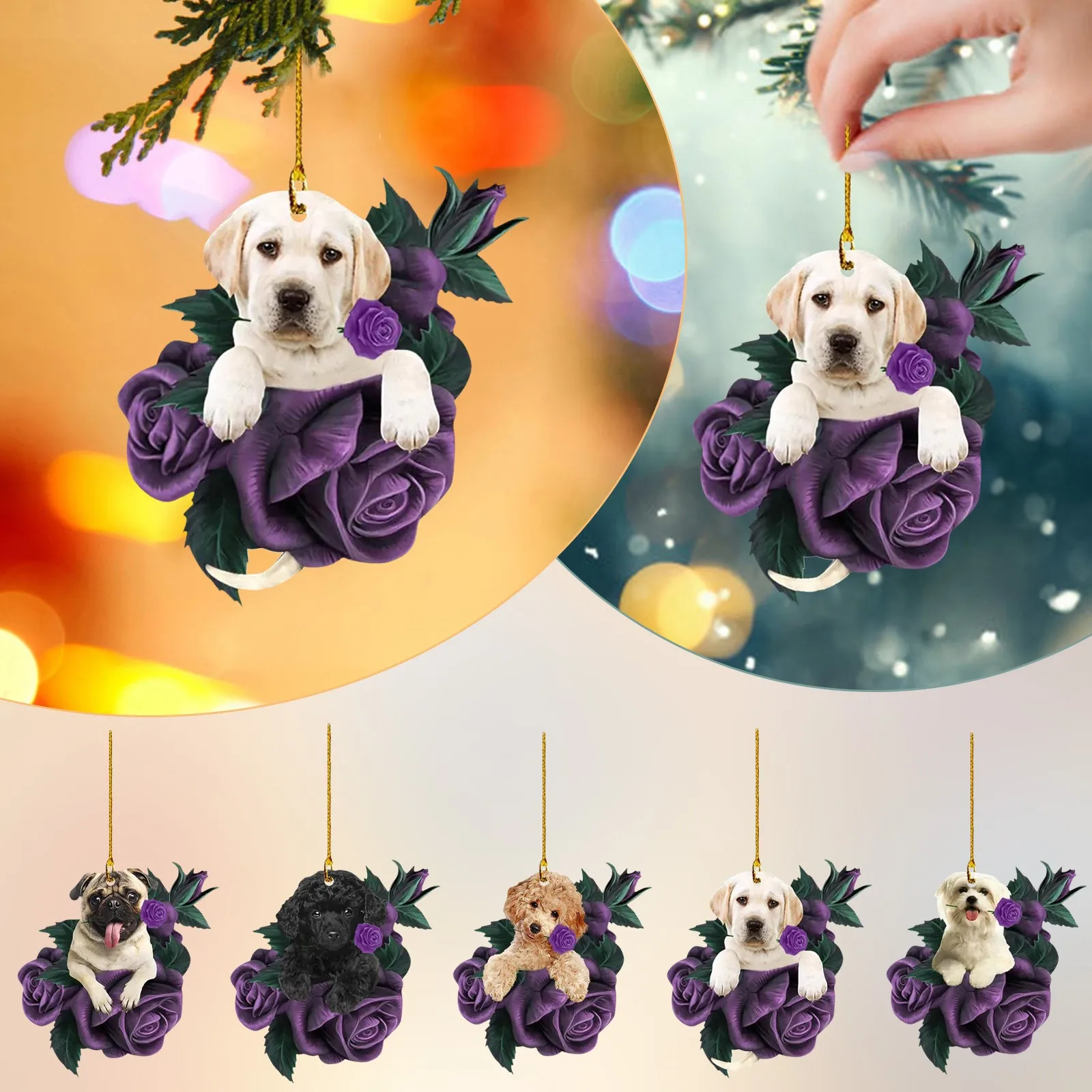 New Dog in Purple Rose Car Pendant, Christmas Tree Personalized Decorations