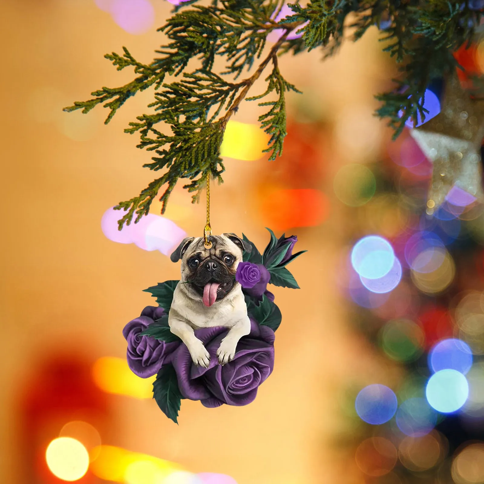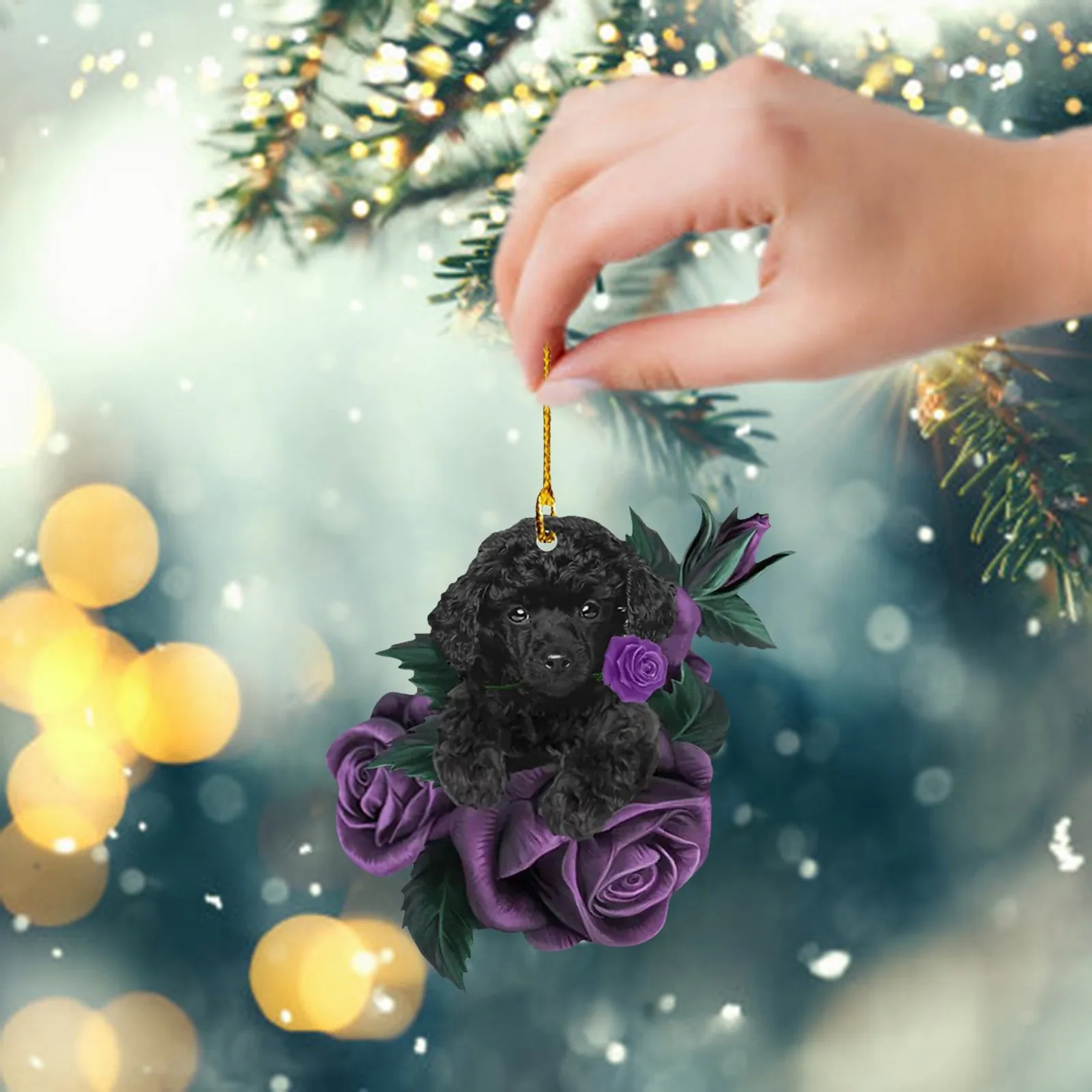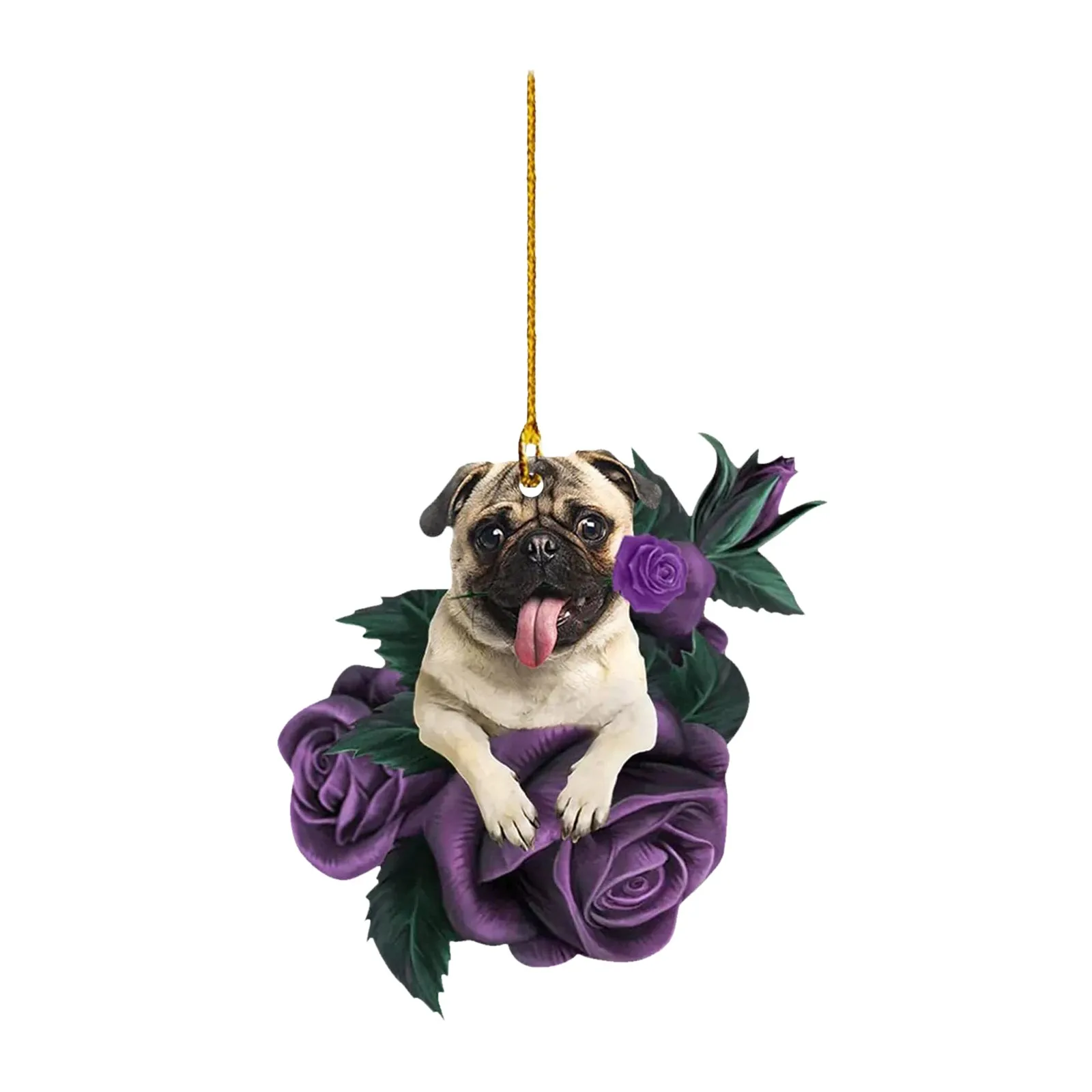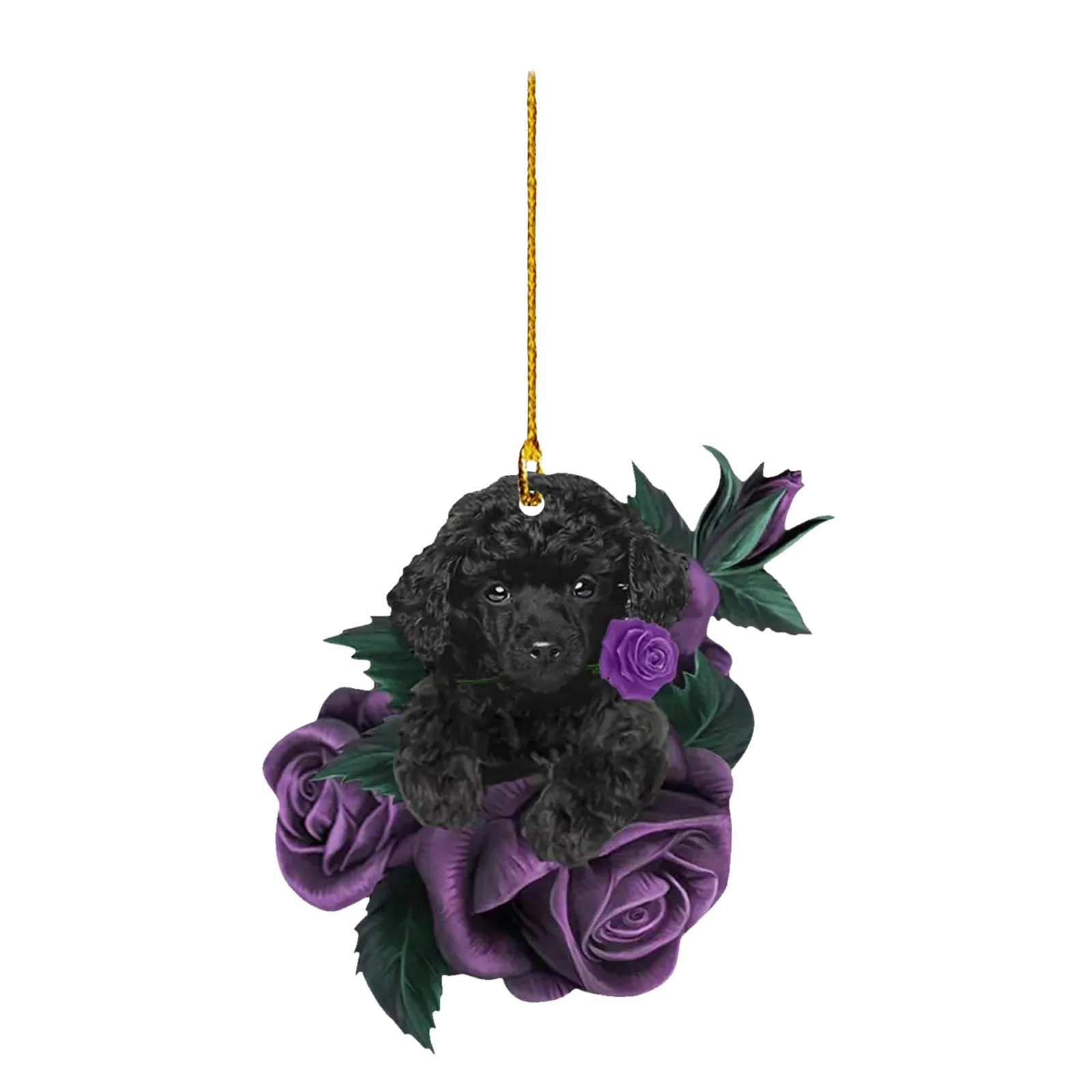 New Dog in Purple Rose Car Pendant, Christmas Tree Personalized Decorations