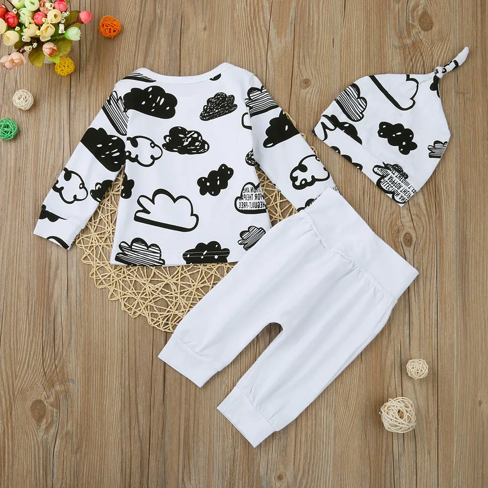 - Fashion Baby Girl Boy Cloud Print T Shirt Tops Pants Hat Outfits Clothes Set, fashion and fit on your little baby.