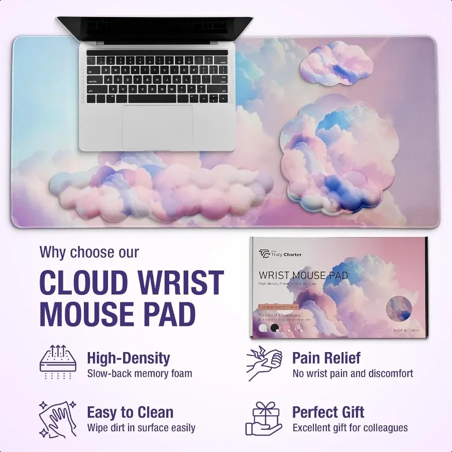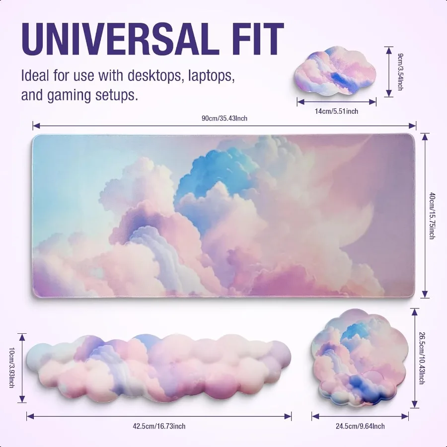 - Cloud-shaped wrist rests: Plush memory foam wrist supports for both keyboard and mouse.