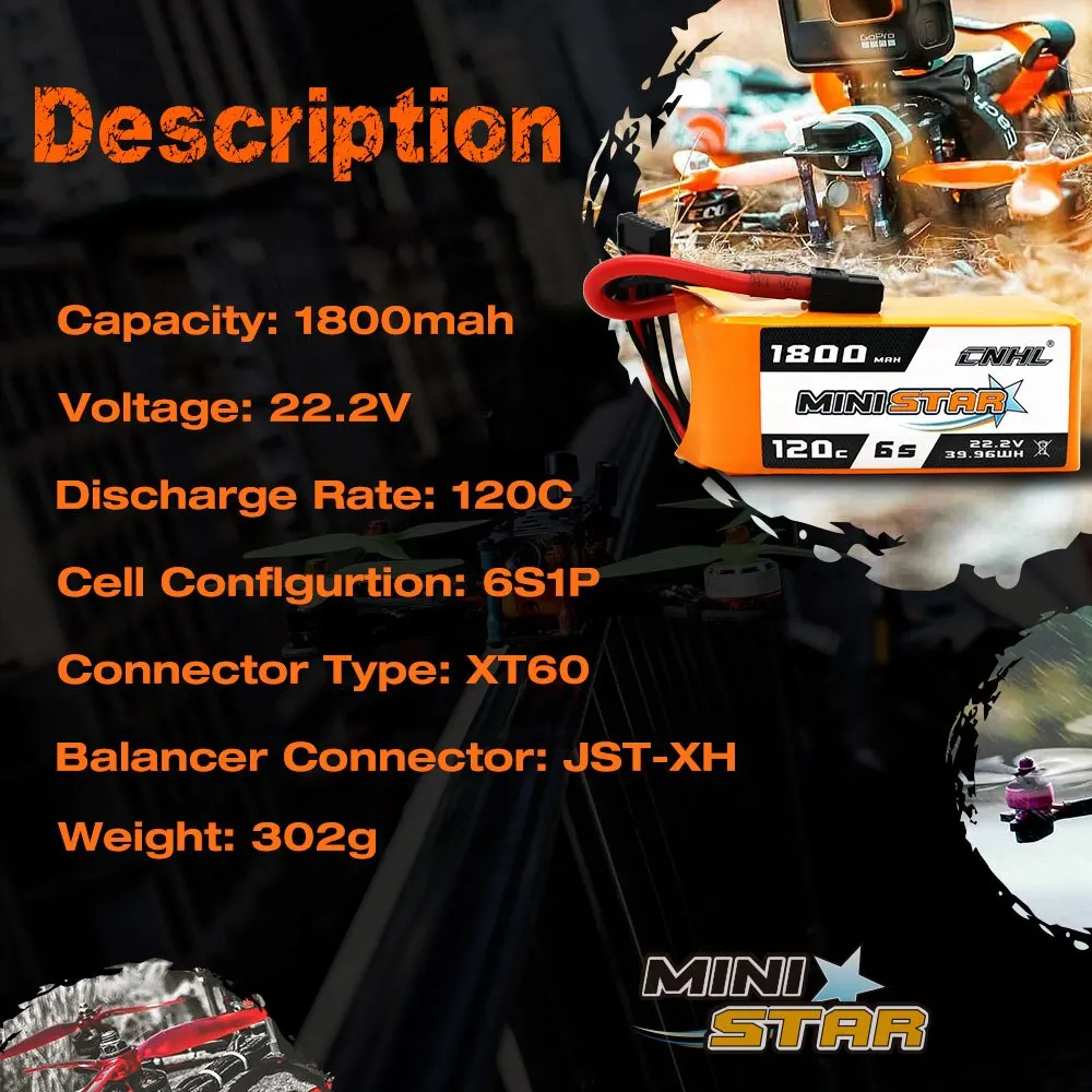 CNHL 6S 22.2V 1800mAh Lipo Battery XT60