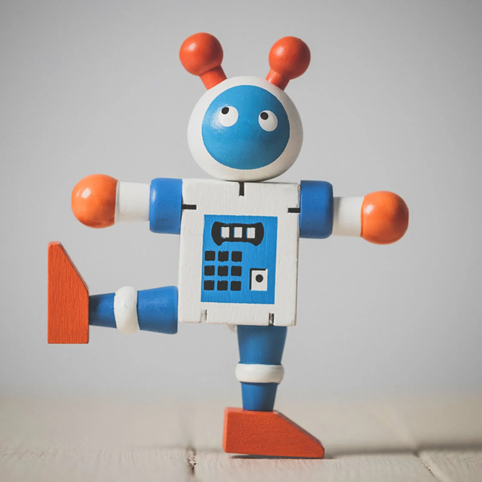 - Bright color and cute pattern of the wooden robot will definitely attract children.