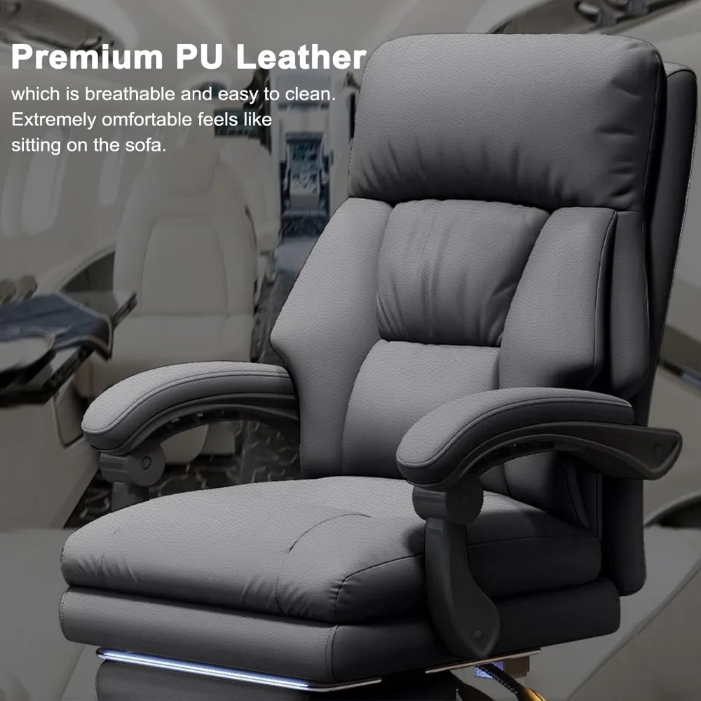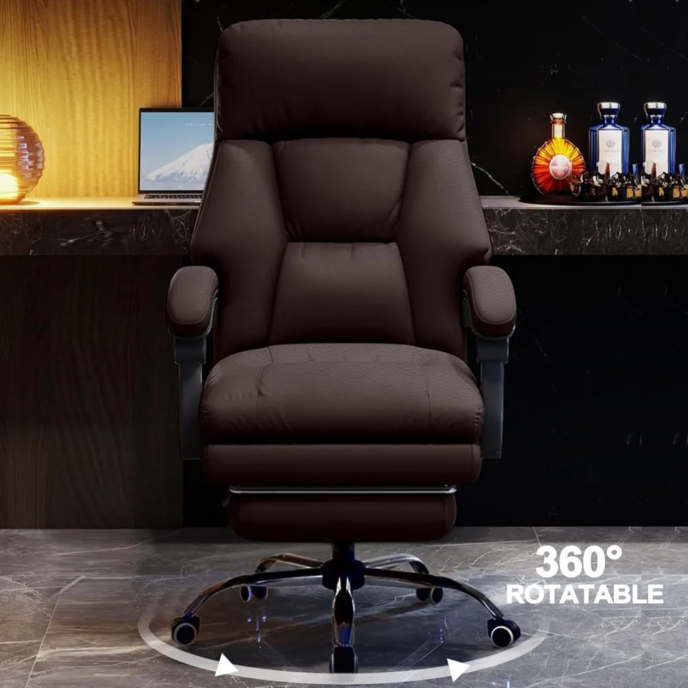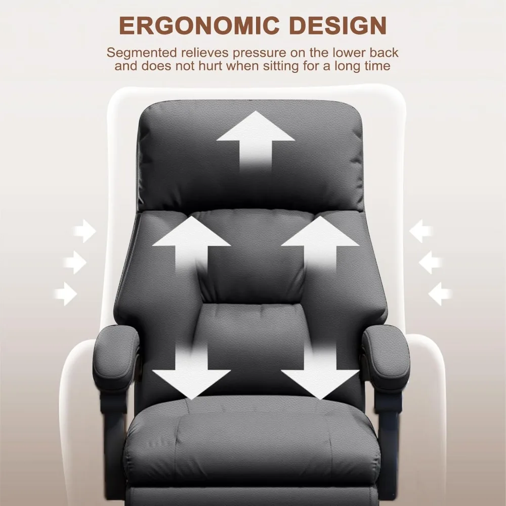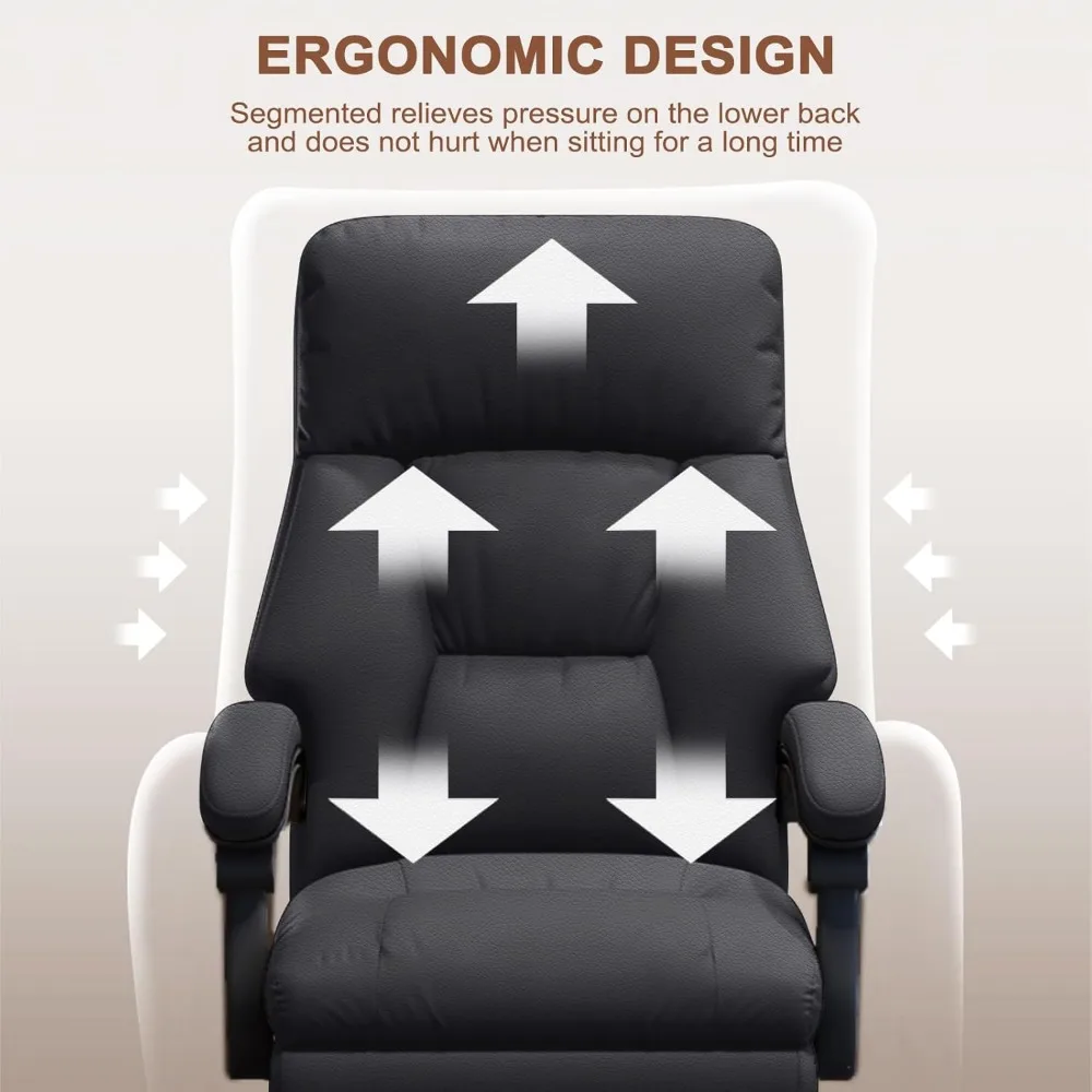 - FUNCTIONAL: You can lean back and relax by easily tilting back or locking it in place with the tilt-locking mechanism. This wide office desk chair features adjustable angles (from 90° to 130°) and a 3.93″ height adjustment. You can recline in different positions or adjust the seat to your desired height. The retractable footrest is a great bonus for relaxing your legs.