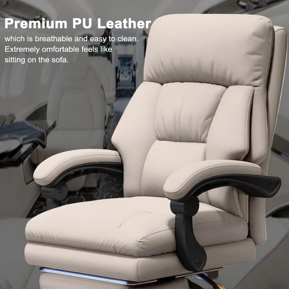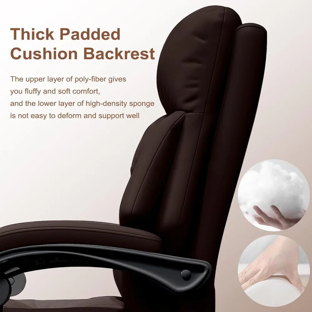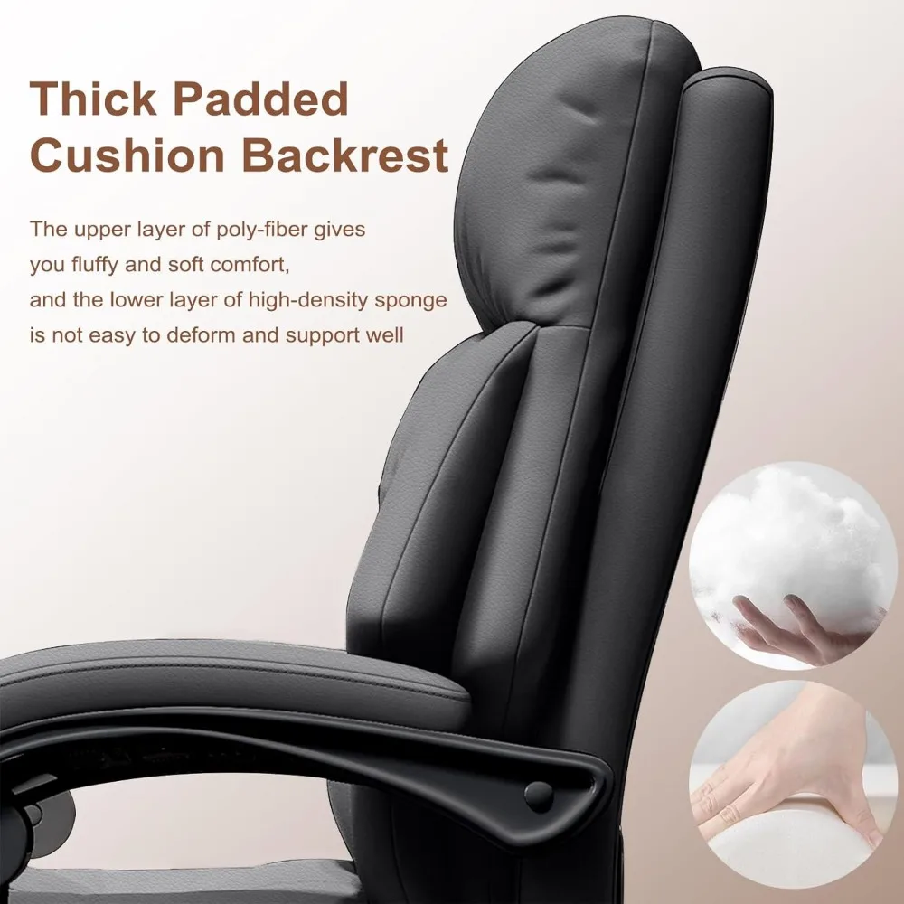 - SUPER COMFY: Stuffed with a high-density sponge, the cushion of the seat and back offers a softer and more comfortable sitting experience. Featuring scratch-resistant leather, this reclining office chair is both beautiful and durable. It is very easy to clean by gently wiping it with a damp cloth.