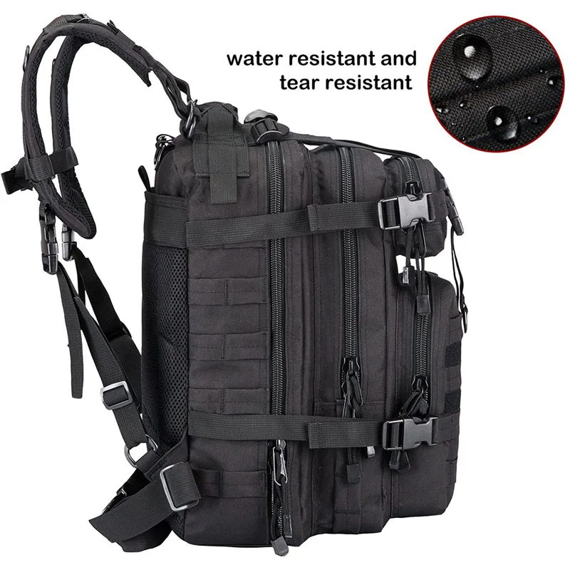 Effectiveness: The backpack has ample storage with various compartments to organize your life, capable of holding 3 days’ worth of clothes, toiletries, and essential gear. It’s a multifunctional backpack suitable for combat, range, survival, or hunting, designed to keep everything dry in a storm thanks to its water-resistant feature.
