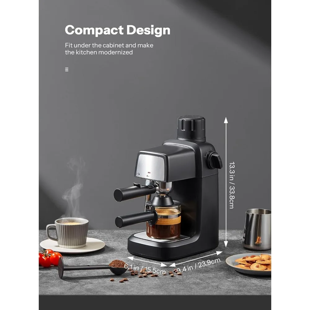 Compact 800W Espresso Machine with Steam Wand