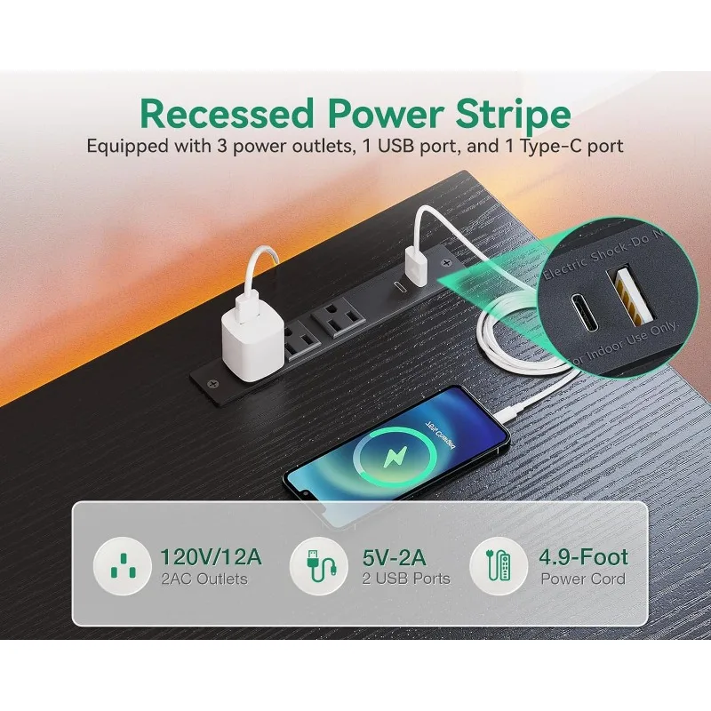 - Power Outlet: Easy Charging — 2 power outlets & 2 USB charging ports bring great convenience to charge your laptop, tablet, or smartphone.