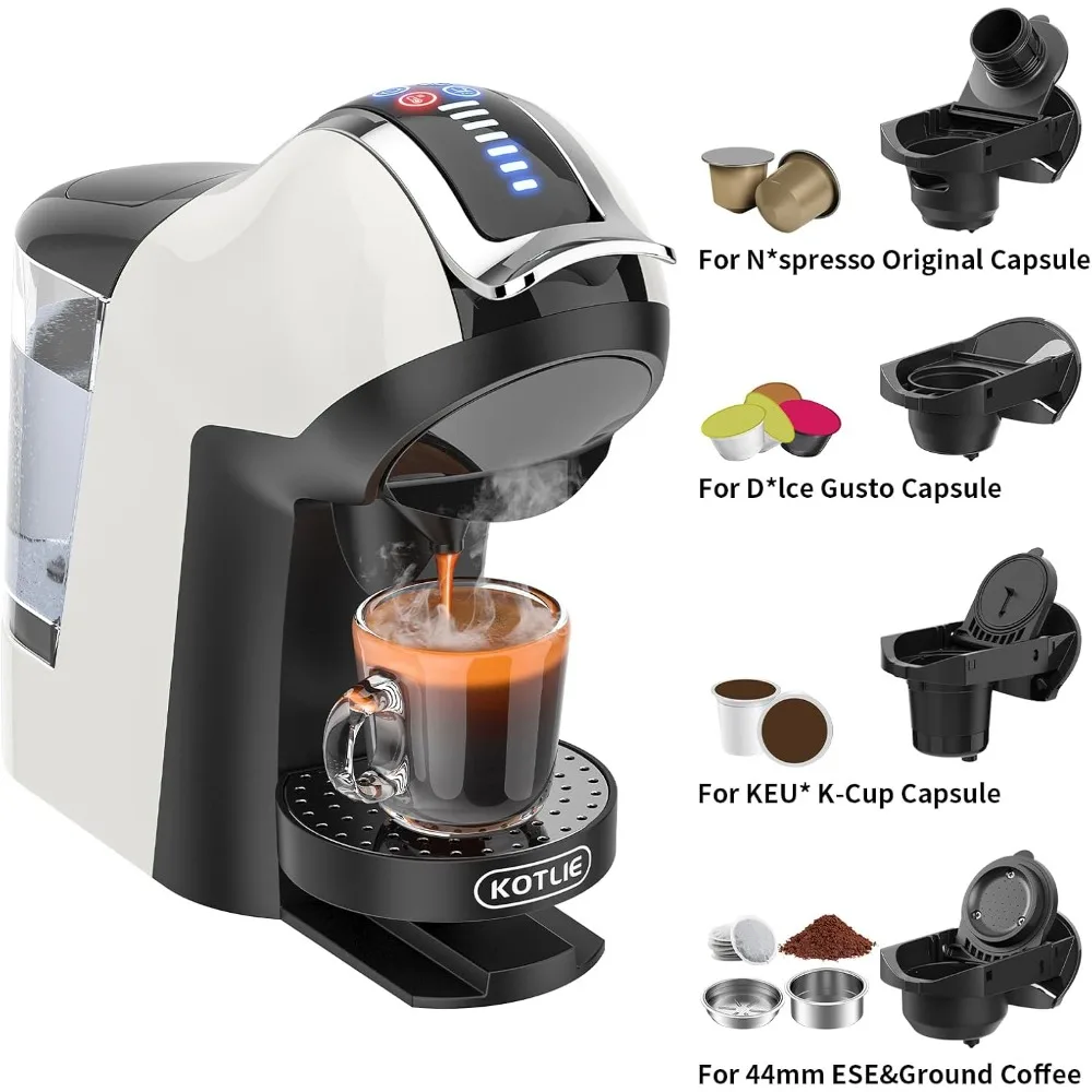 - 5-in-1 compatibility: Supports K-Cup, Dolce Gusto, Nespresso Original capsules, ESE 44Â mm pods, and ground coffee.