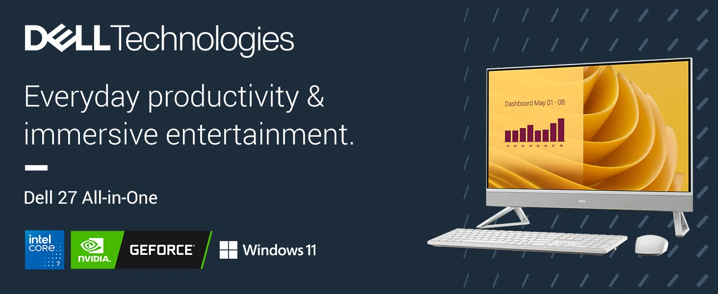 Dell 27 All-in-One. Transform any space into your place. Get the performance you need with impressive visuals on a 27-inch display in the next generation of All-in-Ones. The FHD IPS display features 99% sRGB and 50% higher contrast within a narrow border, so you can enjoy vivid, true-to-life colors as you work, learn, or stream. Keep your eyes comfortable during long screen sessions with Dell ComfortView Plus, designed to reduce harmful blue light emissions. Look your best, even in challenging lighting conditions, thanks to HDR technology on the 5MP plus IR camera.