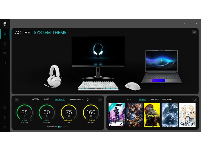 AlienFX: Customize your setup with lighting settings that extend to Alienware accessories, as well as key binds and calibration.