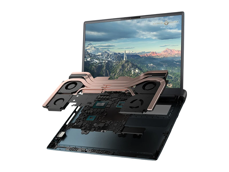 With 48% more copper by weight than previous 18-inch laptops and a vapor chamber that is 4 times larger, the Alienware 18 Area-51 dynamically balances heat across 7 heat pipes, making it one of the most performance-forward 18-inch laptops to date.