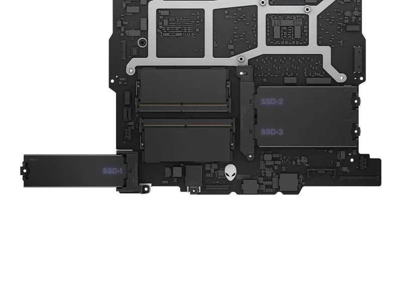With two SO-DIMM slots designated for DDR5 system memory, Area-51 laptops can support 32GB of memory.