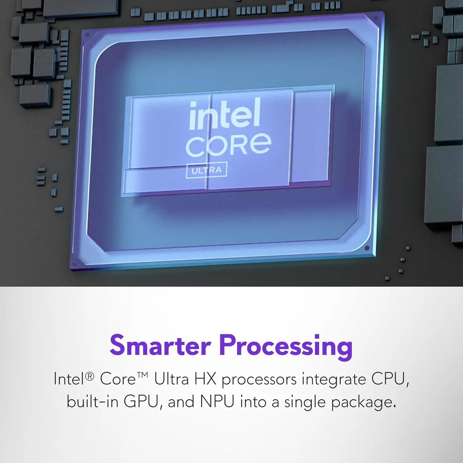 Intel Core Ultra HX processors integrate CPU, built-in GPU, and NPU into a single package designed for AI acceleration and balanced performance across your favorite tasks.