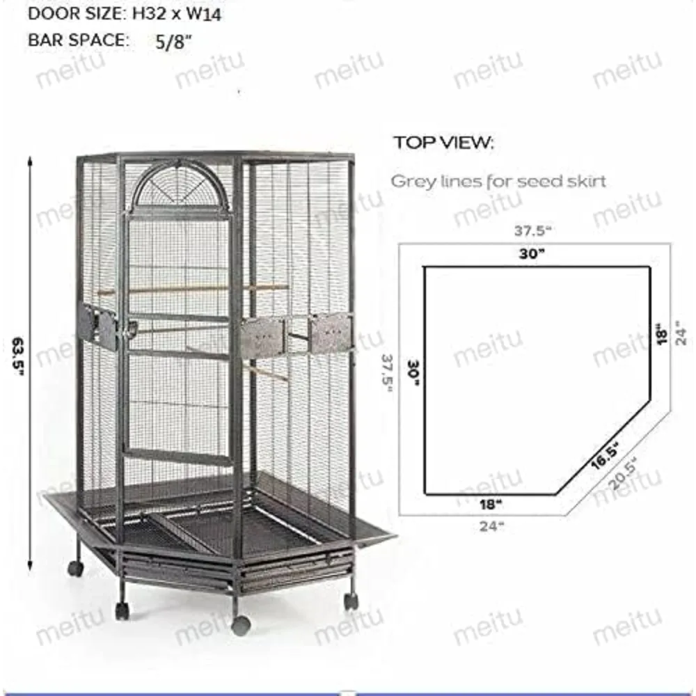 Corner Bird Cage for Cockatiels and Parakeets