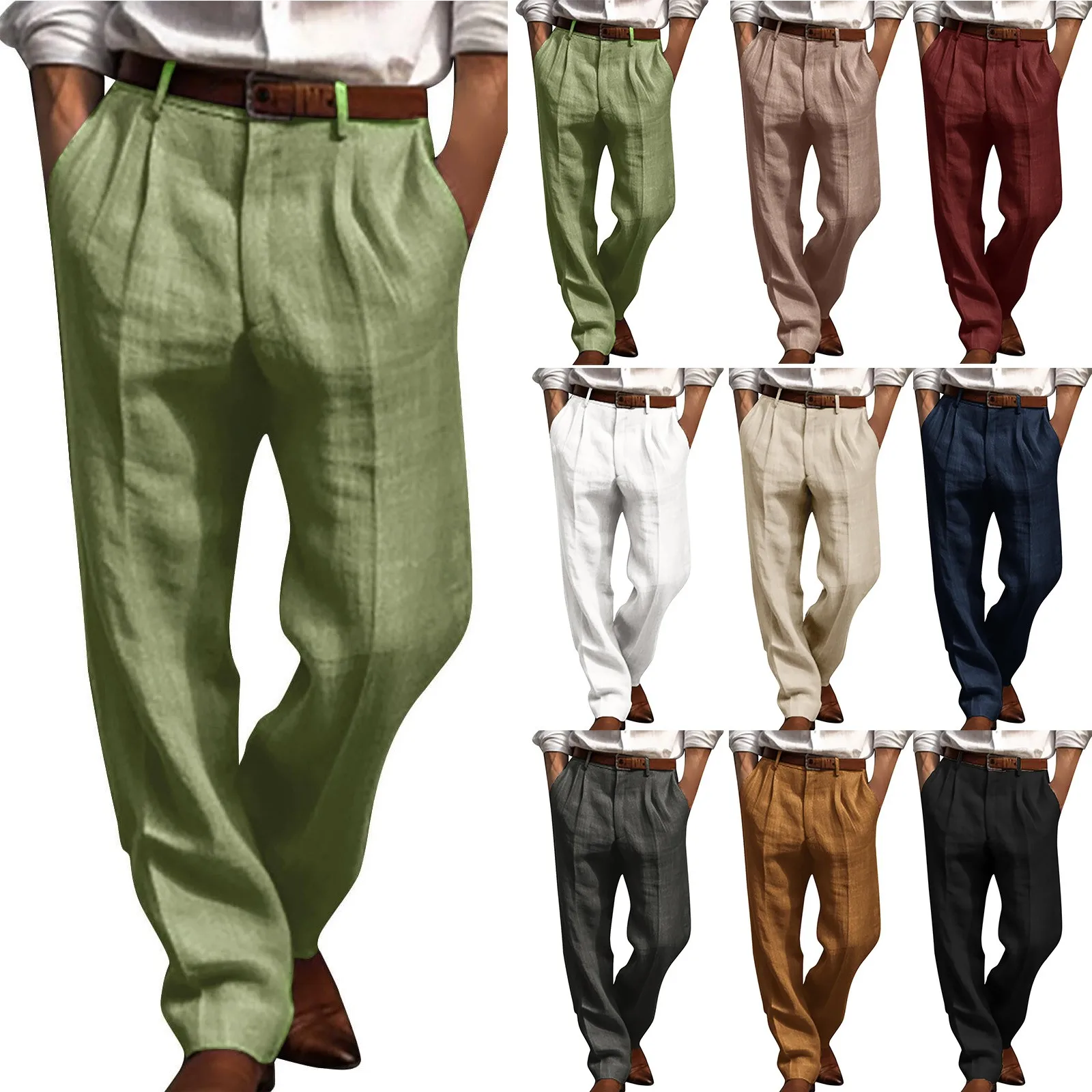 Cotton Linen Pleated Straight Leg Trousers