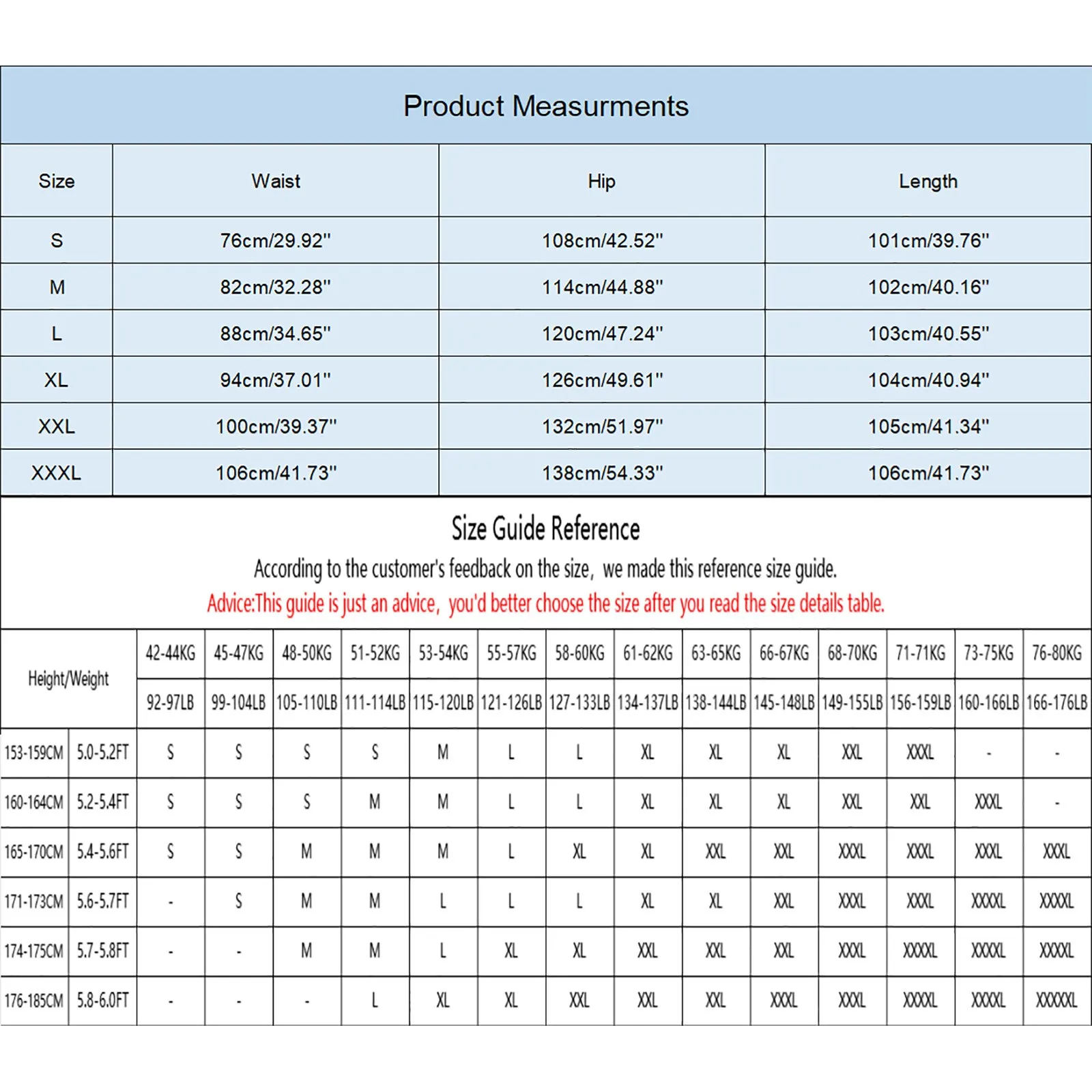 Size: XXXL, Waist: 106cm/41.73”, Hip: 138cm/54.33”, Length: 106cm/41.73”