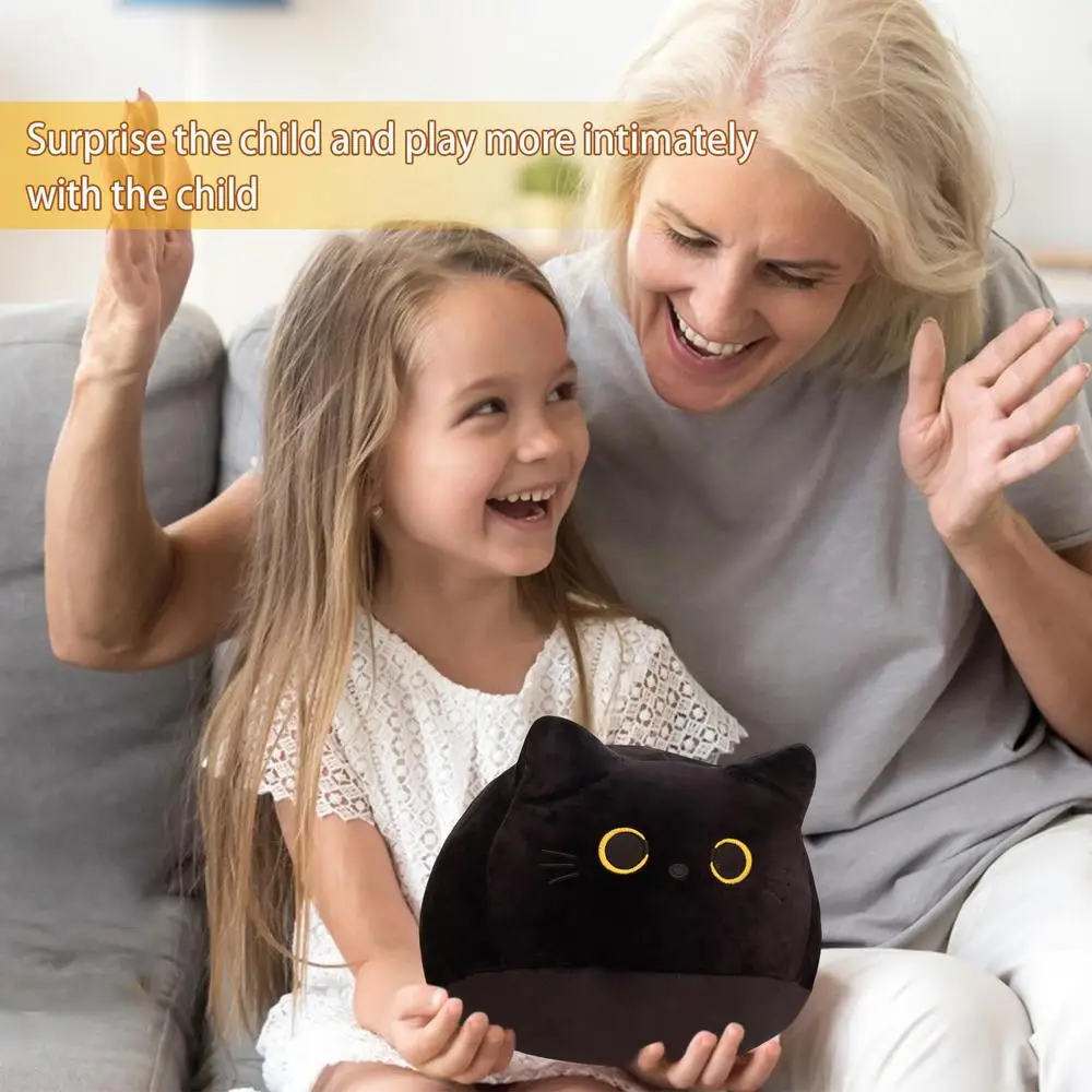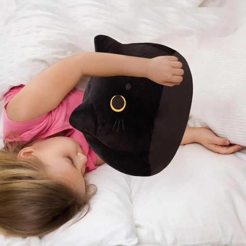 Child Soothing Comfort: Specifically designed for children, this black cat pillow acts as a comforting companion, aiding in better sleep. Its size is perfect for children to embrace and hold.