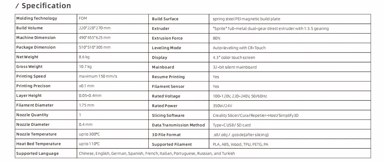 CR Touch Automatic Bed Leveling: This feature incorporates 16-point automatic bed leveling technology, eliminating the need for manual leveling. It simplifies the leveling process, making it straightforward and efficient.