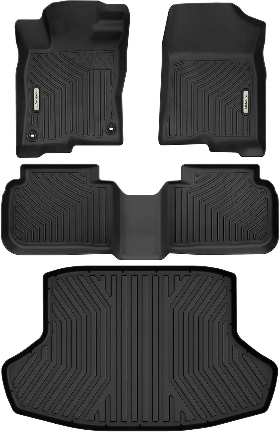 - Note & Package: Includes 2 front floor mats, 1 rear floor liner, and 1 rear cargo liner. If you notice creases on the received floor mats, refer to the note to address the issue. (Note: Allow the mats to lay flat in a warm area or use a hairdryer or heat gun on them to help them regain their original shape.)