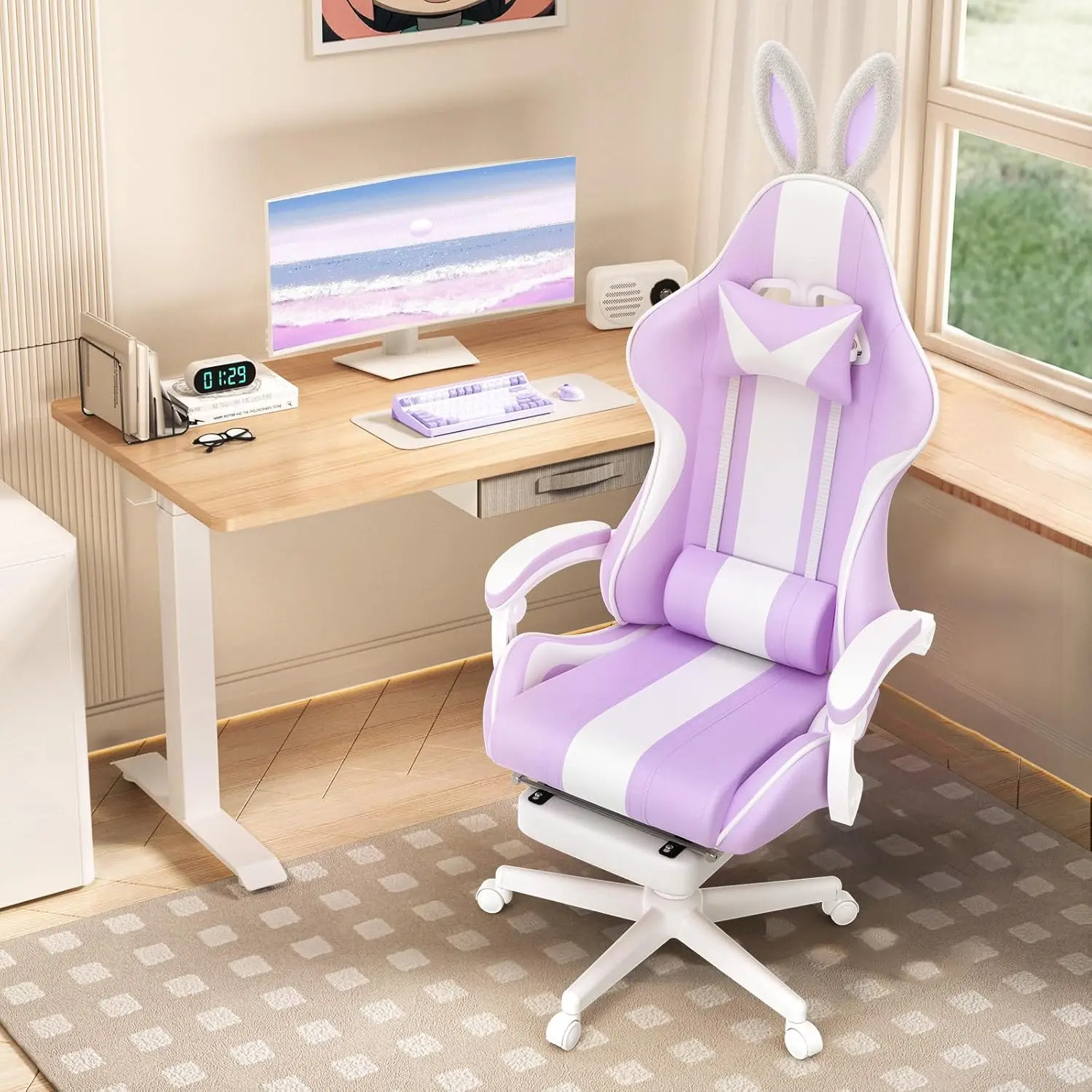 This ergonomic gaming chair combines cute aesthetics with functional comfort, ideal for gamers, students, or anyone seeking an upgraded seating experience. Designed to support up to 250 lbs, it includes plush rabbit ears for a playful, unique look that adds a whimsical touch to any gaming setup or office environment.