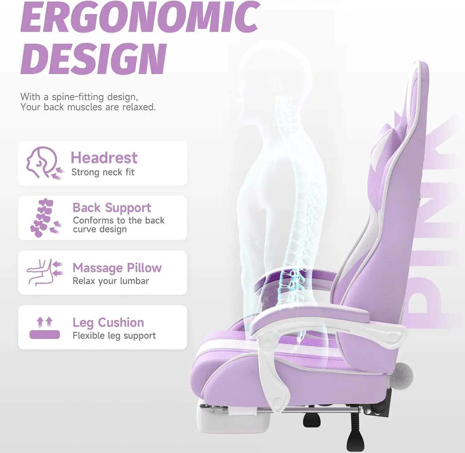 Key Takeaway: This ergonomic gaming chair provides a perfect blend of comfort, durability, and style with its unique rabbit ear design, recline, and footrest features, making it an excellent choice for gamers, professionals, and anyone seeking a comfortable yet playful seating option.