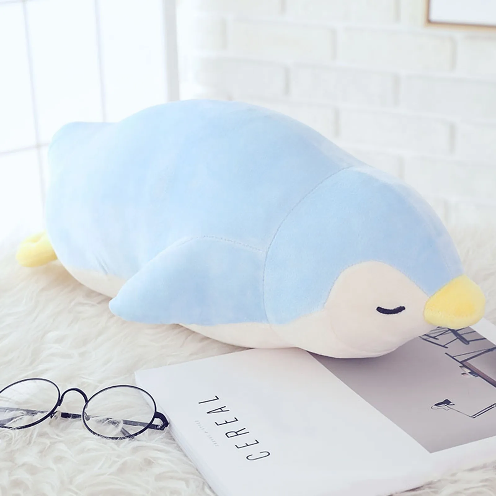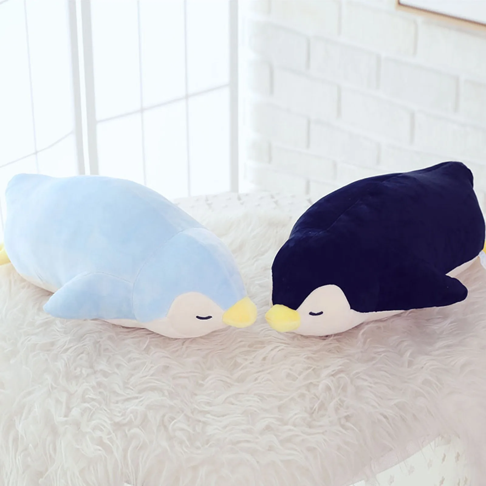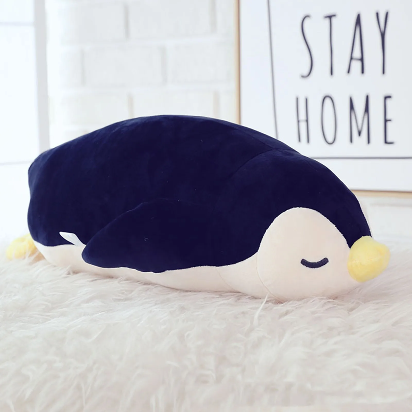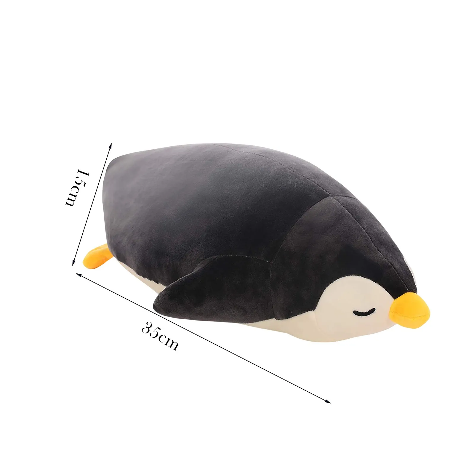 Design: These cute soft Penguin pillows feature a charming face with expressive eyes, crafted without any buttons or plastic parts for added safety. The plush toys are entirely soft, containing no hard elements. Each Penguin pillow boasts a streamlined body, an adorable yellow beak, and a pair of fins. The body is moderately filled, ensuring the pillow is both soft and cuddly.