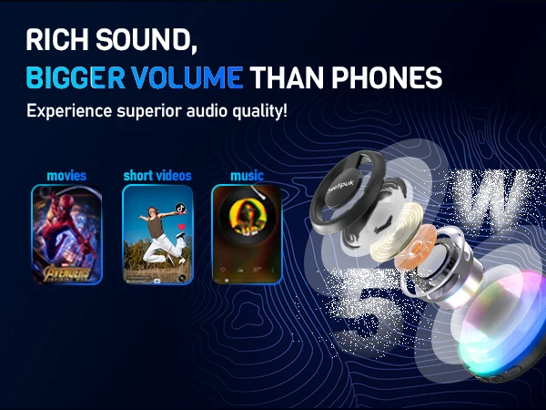 Crystal Clear Sound with Rich Bass: Equipped with a 4Ω/5W RMS speaker, this magnetic Bluetooth speaker for phone delivers rich bass and clear audio for an immersive experience. Whether you’re watching movies, gaming, or enjoying music, every sound comes to life.